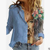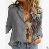 Loose Retro Digital Portrait Printing Women's Shirt Casual Button Cardigan Autumn Hot Style Ladies Blouse