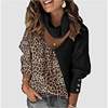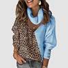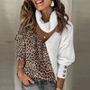 Loose Women Knitted Sweaters 2021 Autumn Fashion Casual Leopard Patchwork Turtleneck Long-sleeved Pullover Ladies Office Shirts