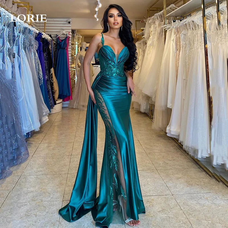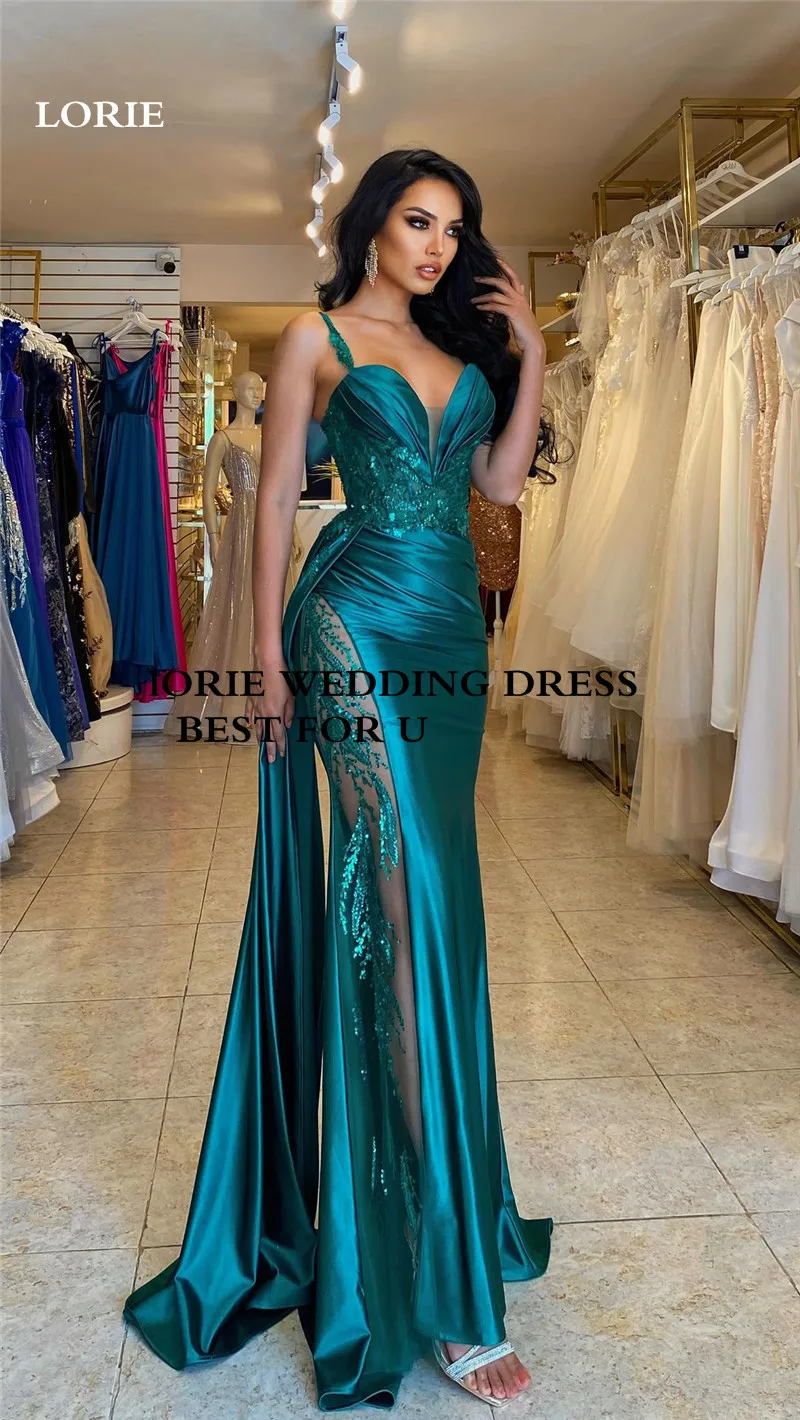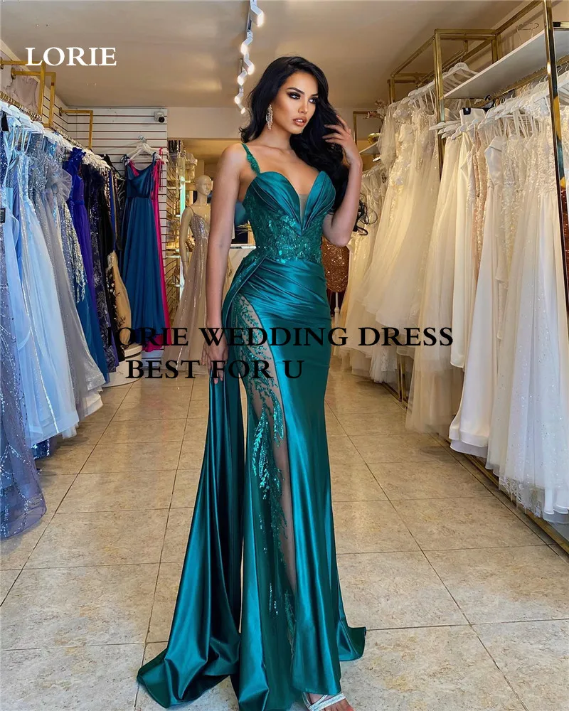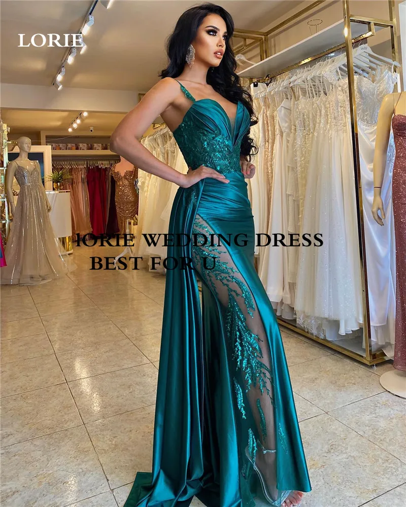 LORIE Hunter Spaghetti Straps Green Mermaid Evening Dresses Side Split Summer Lace Prom Gowns Evening Party Dress