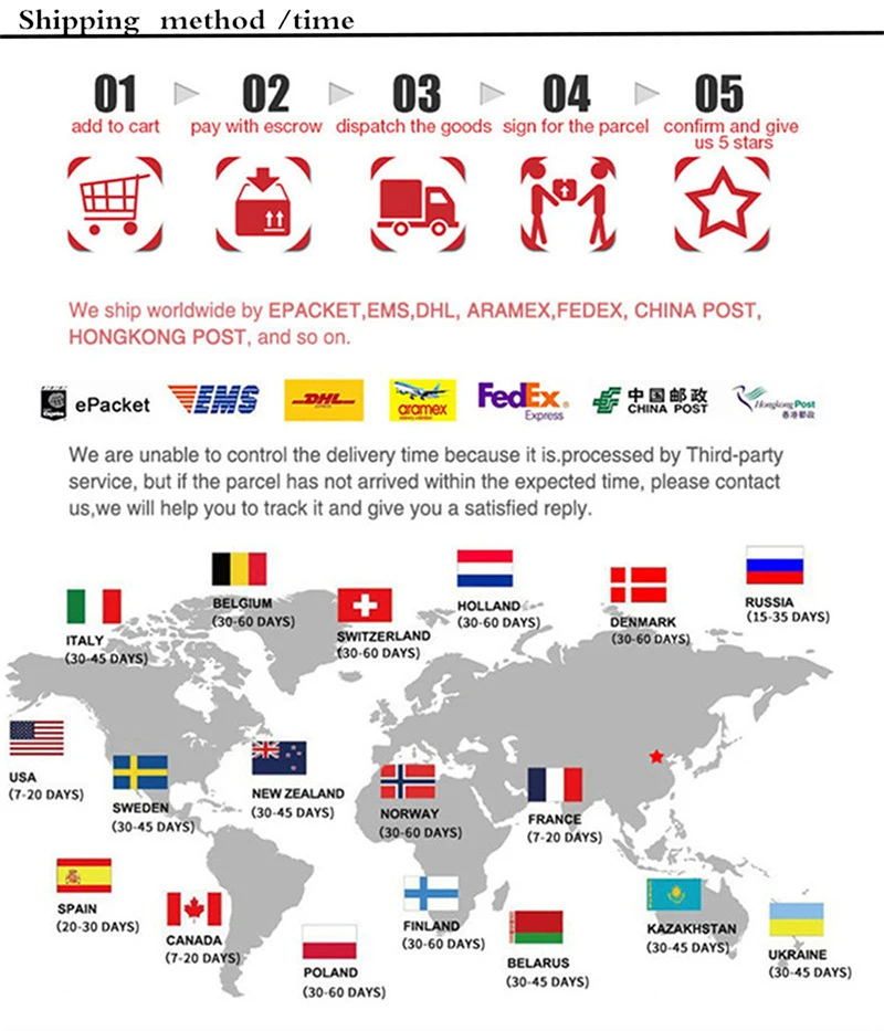 5.If you need this dress urgently,please don’t choose the China Post Air,the shipping time is very slowly(25-35 days).