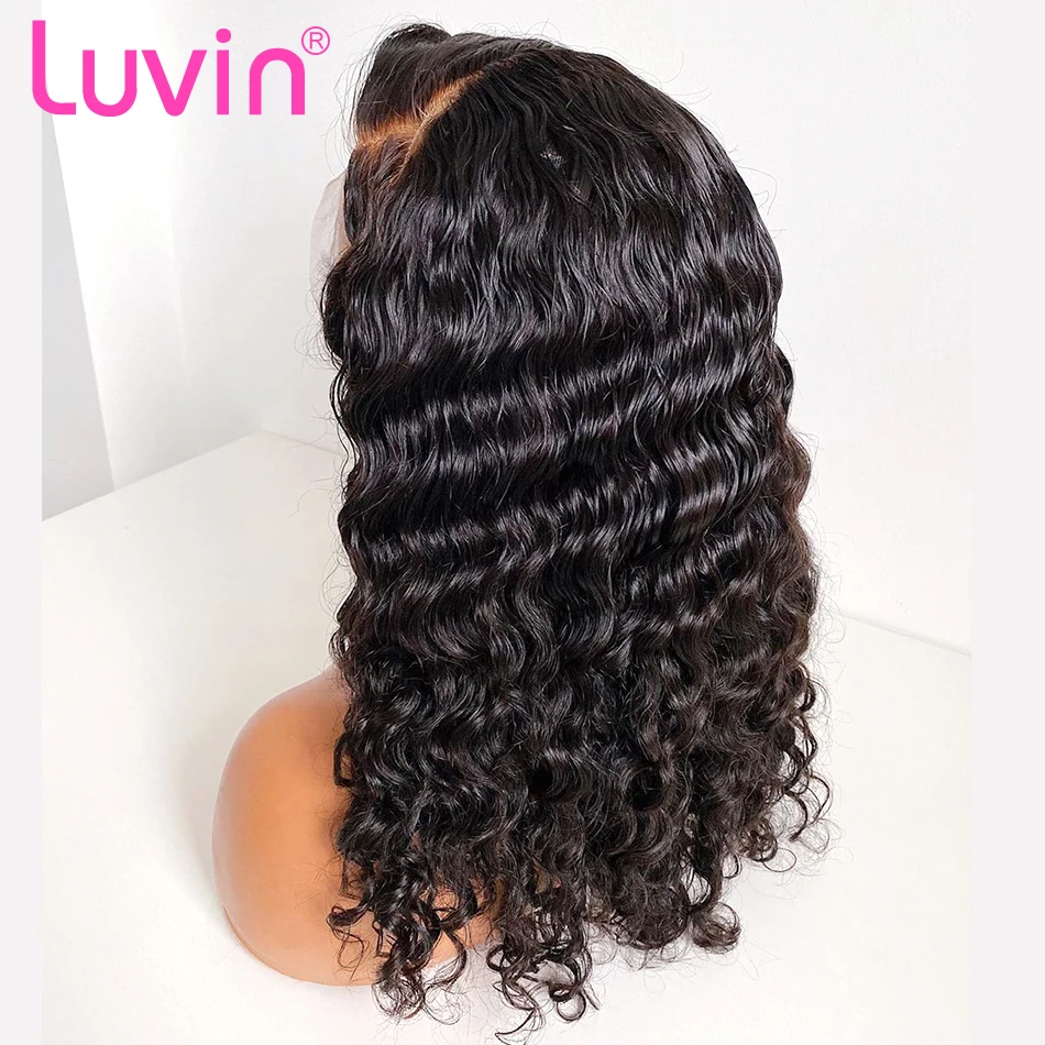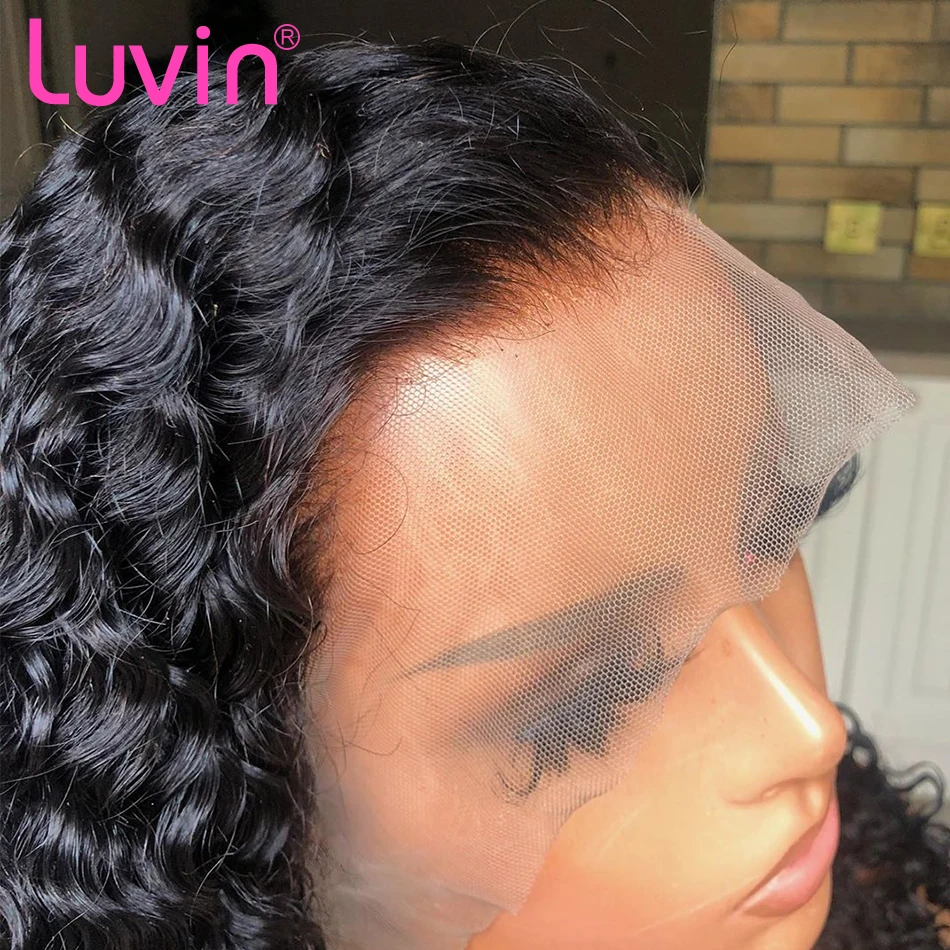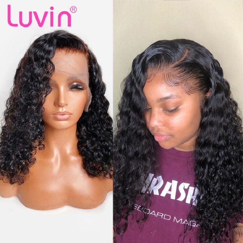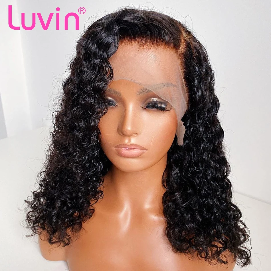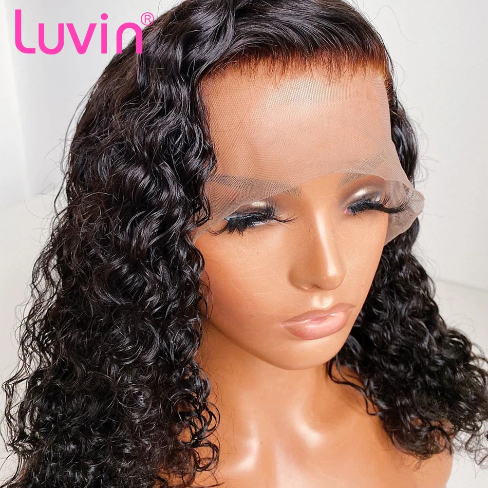 Luvin Curly 13×4 Lace Front Human Hair Wig Bob Deep Wave Pre Plucked Brazilian Curly Frontal Natural Water Wigs