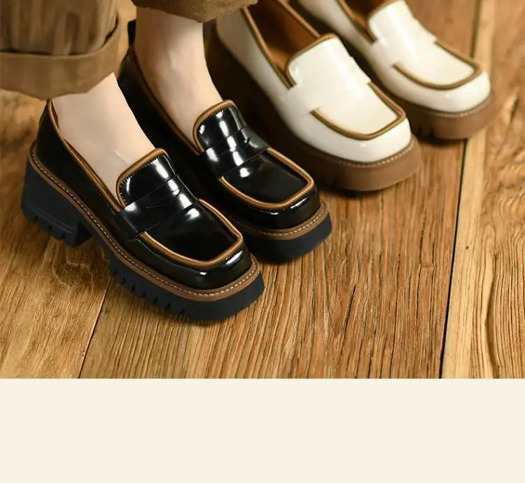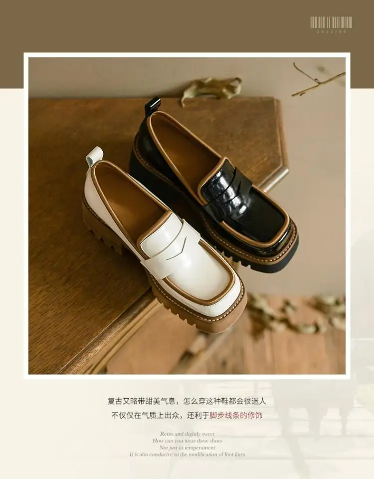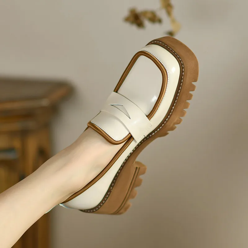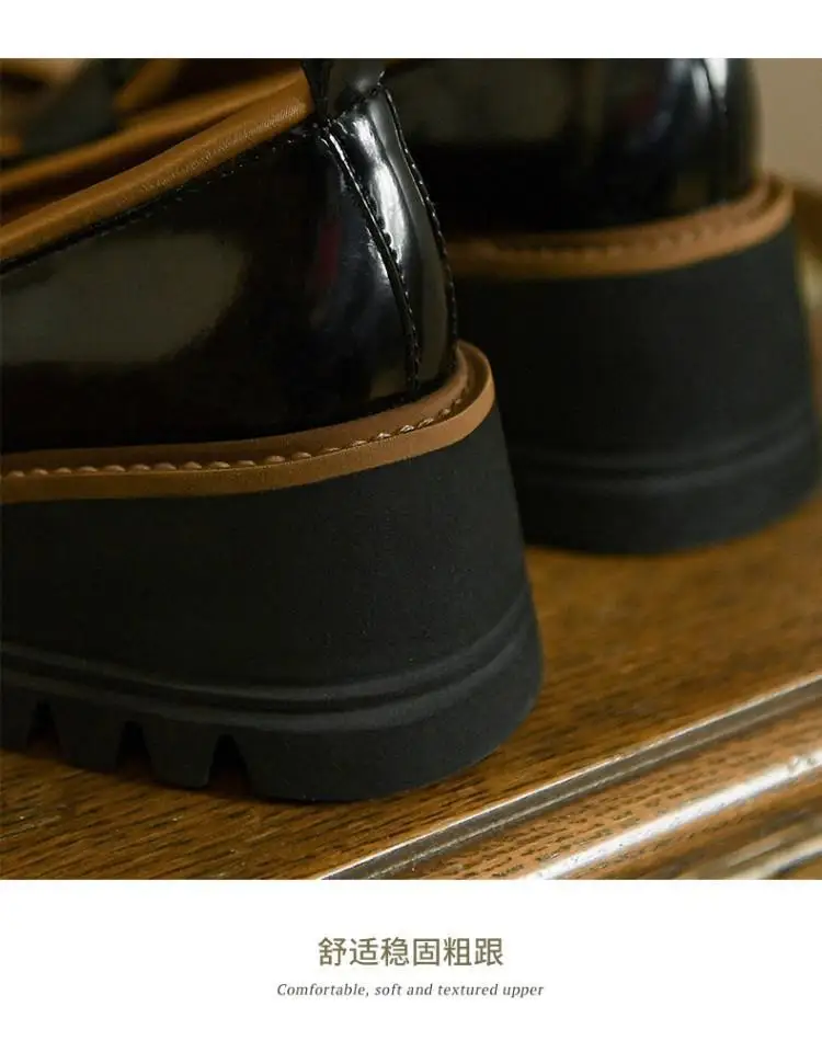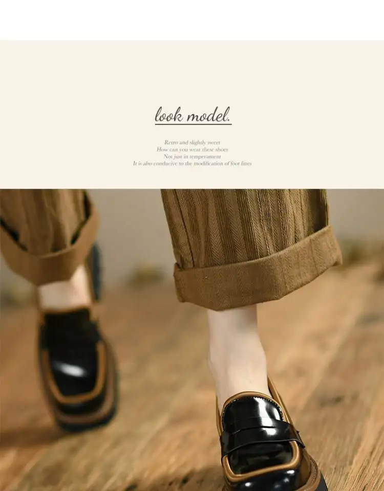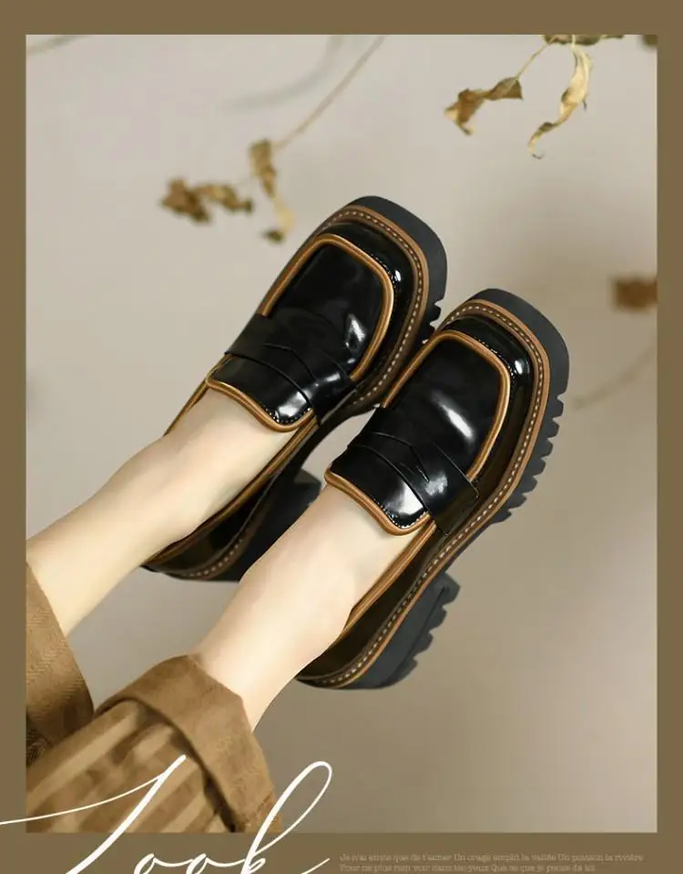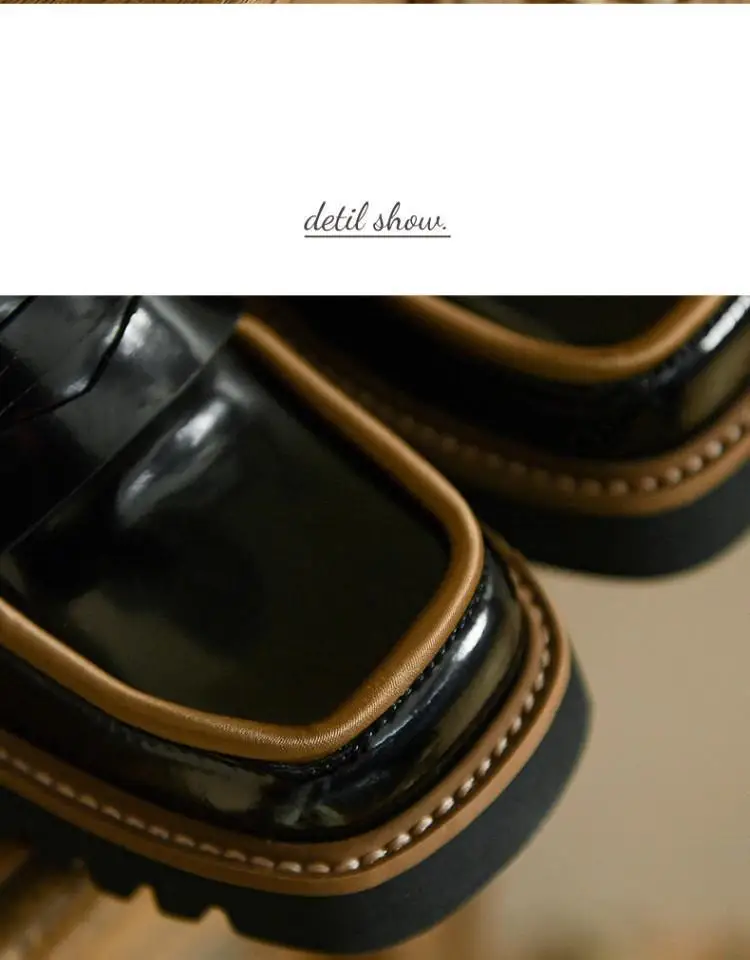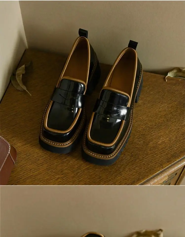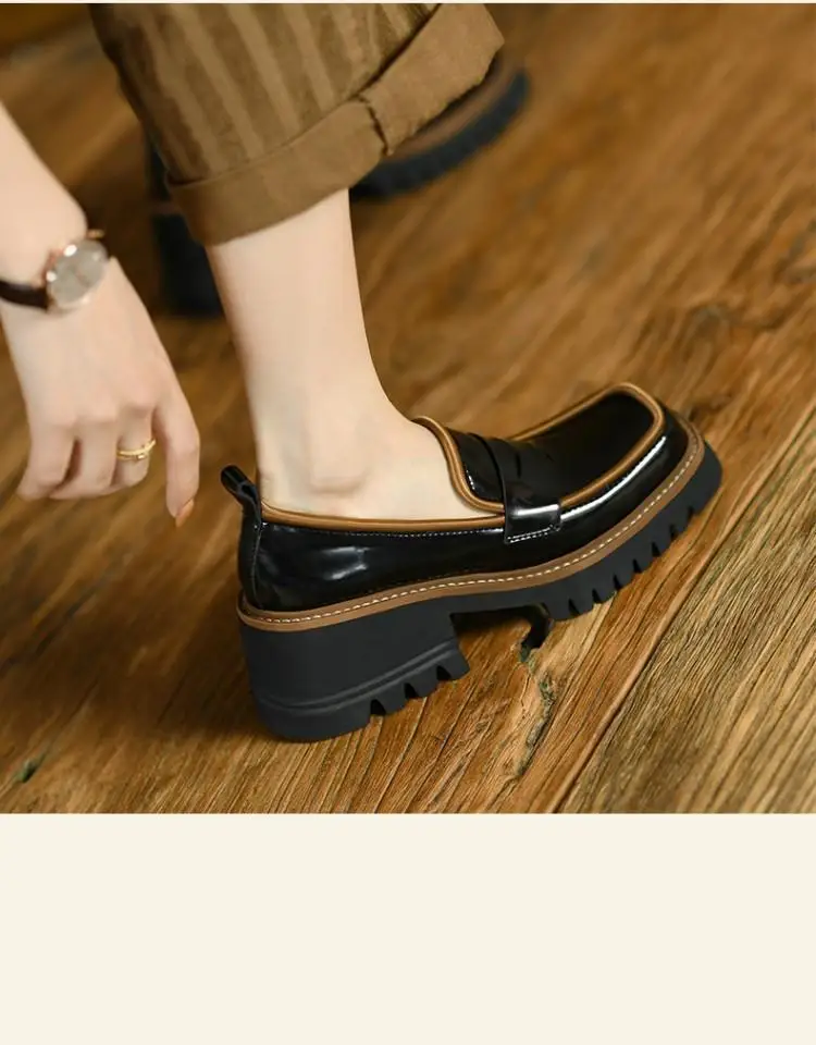 Luxury Brand Thick-soled Mary Jane Shoes Women Color Matching Leather Shoes Women's Fashion Retro Loafers Women Pumps