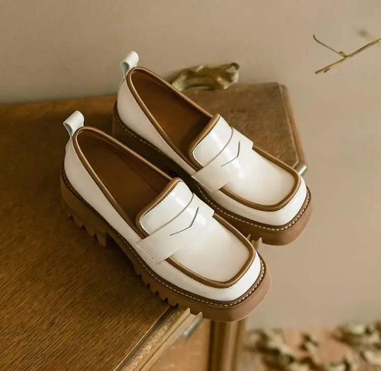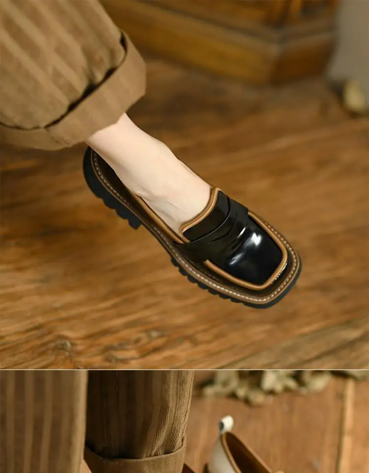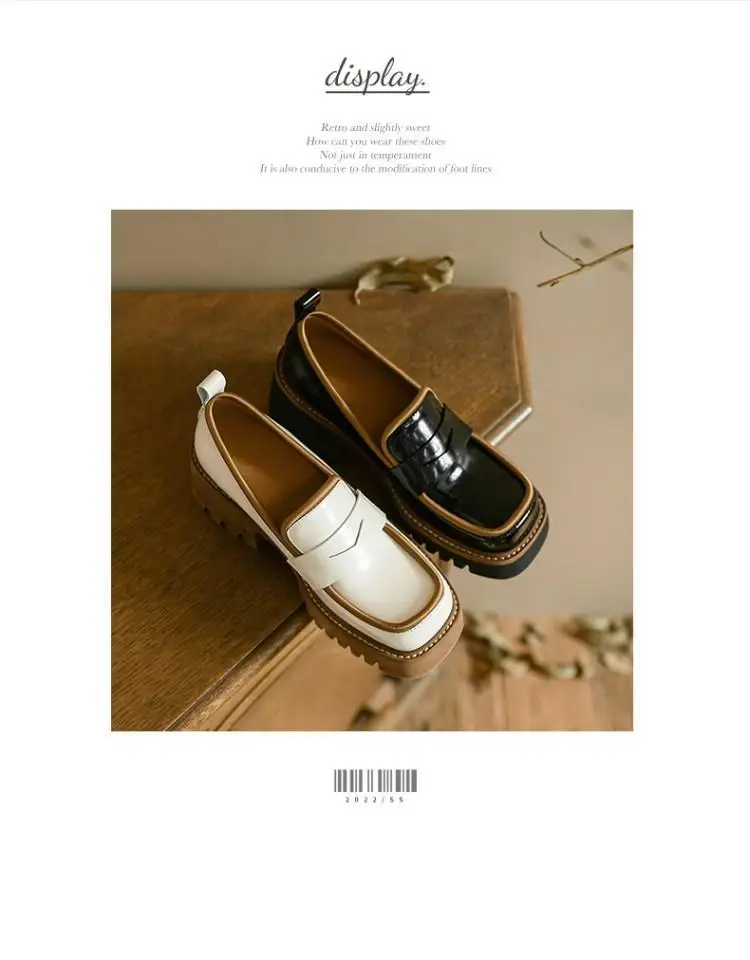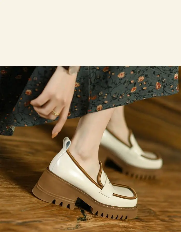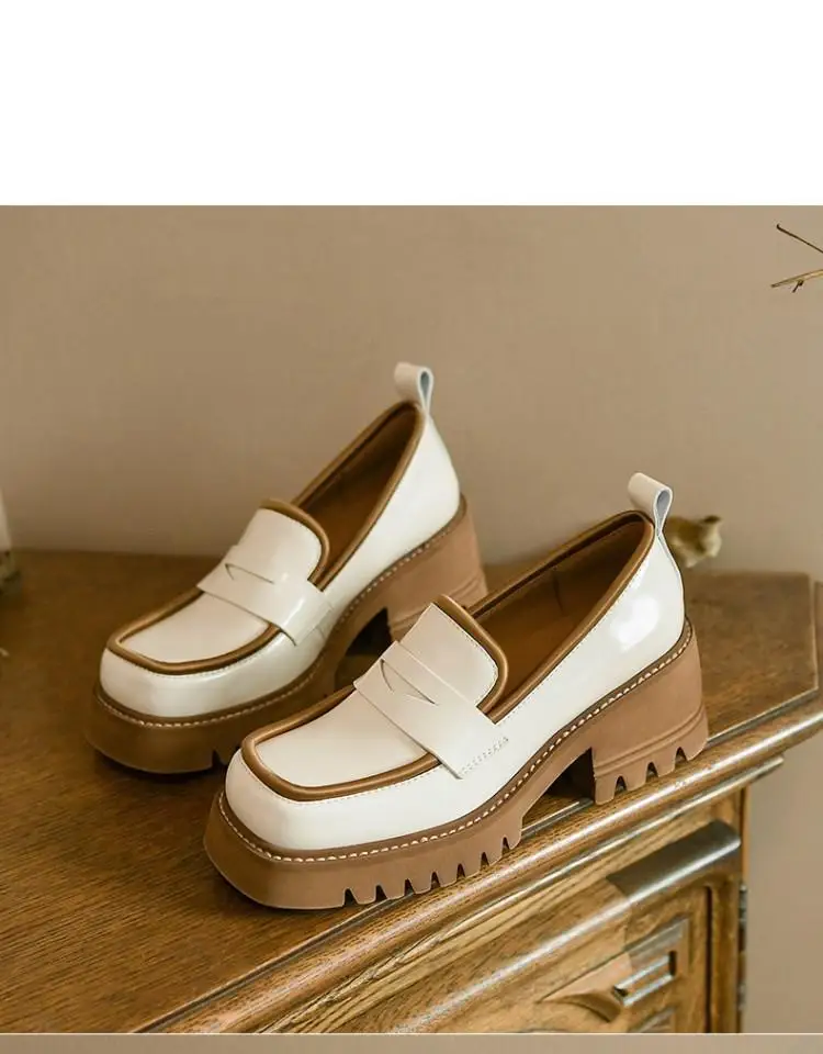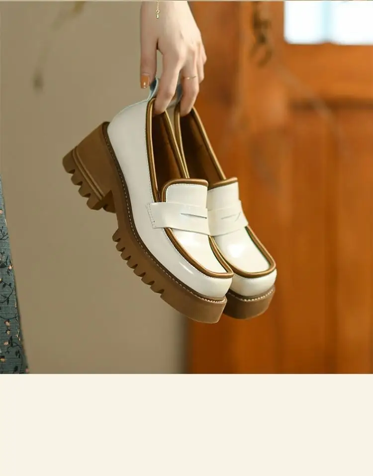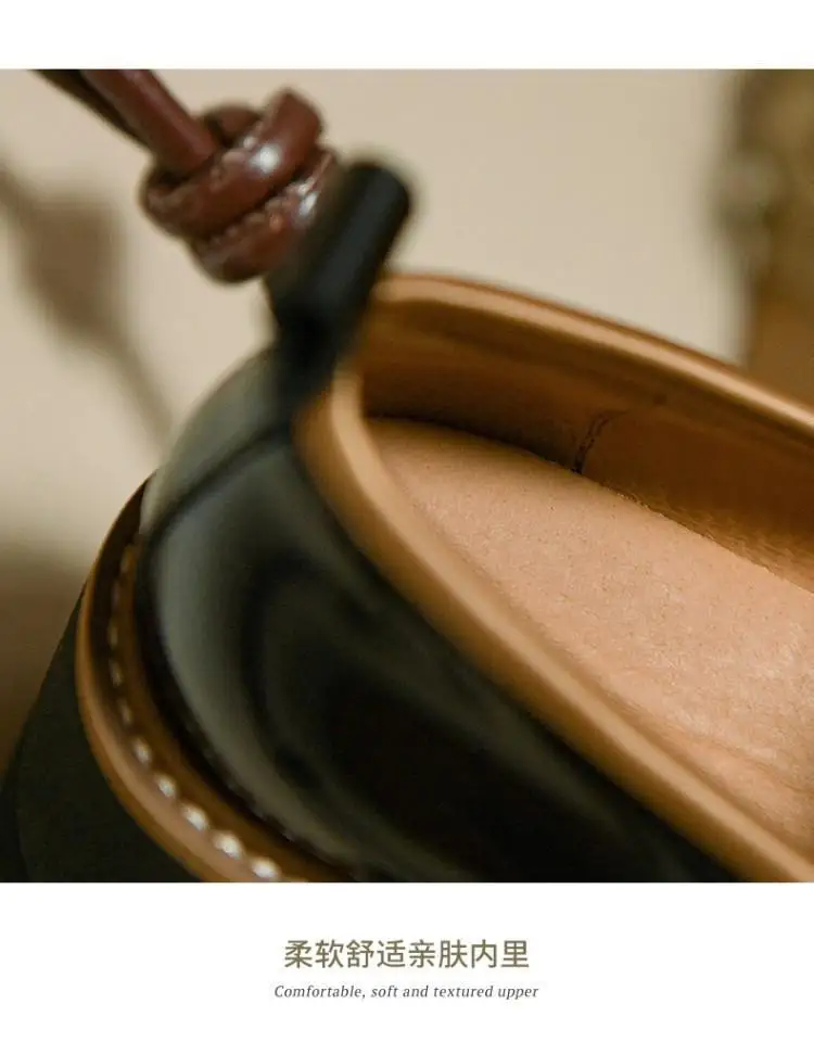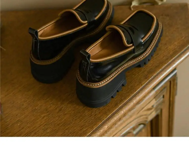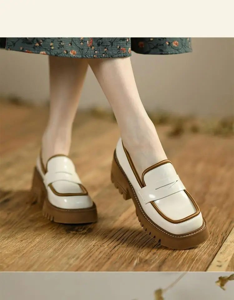 Luxury Brand Thick-soled Mary Jane Shoes Women Color Matching Leather Shoes Women's Fashion Retro Loafers Women Pumps