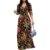 Maxi Dress for Women Casual Sundress V-Neck 3/4 Sleeve Plus Size