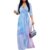 Maxi Dress for Women Gradient Casual Long Sundress V Neck 3/4 Sleeves with Belt