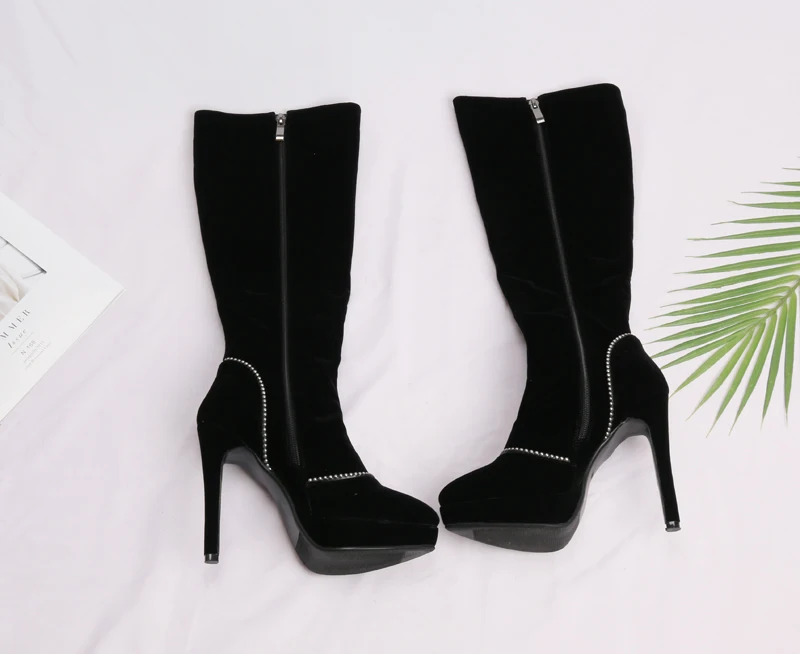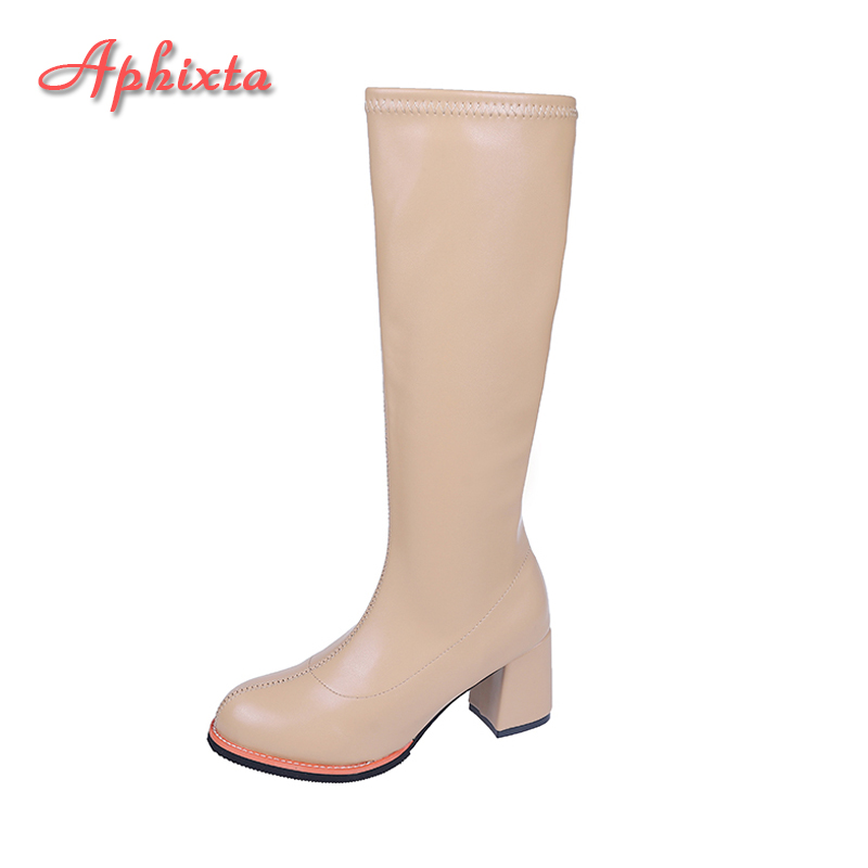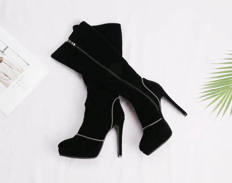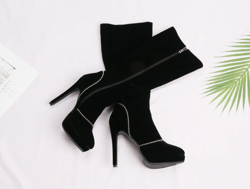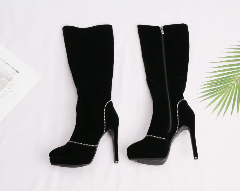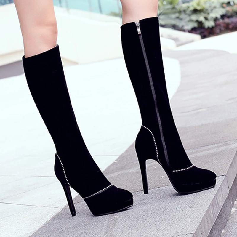 Meotina Women Knee High Boots Women High Heel Boots Winter Platform Sexy Ladies Long Boots Autumn Stiletto Footwear Black 33-43