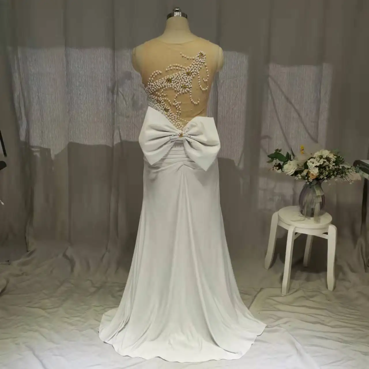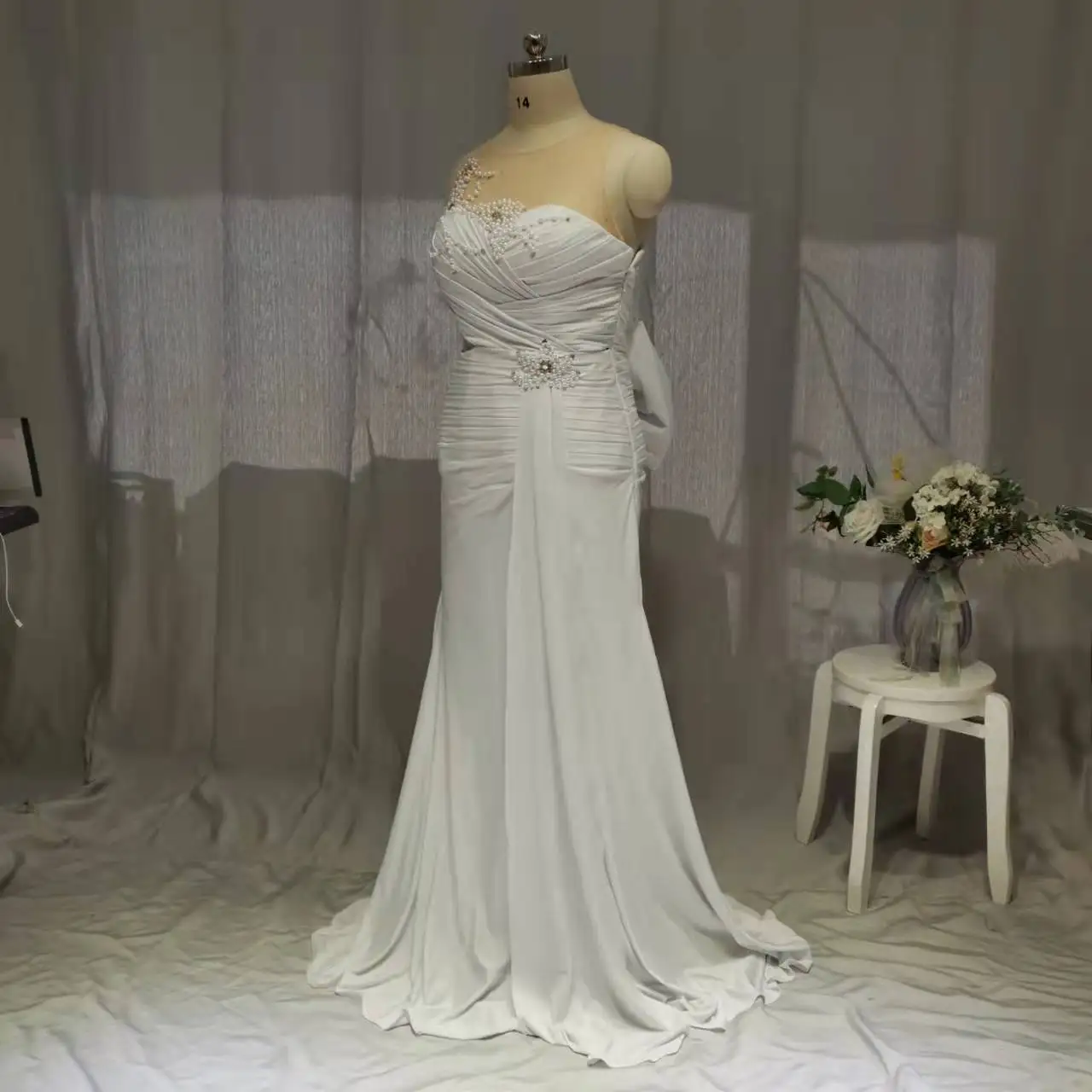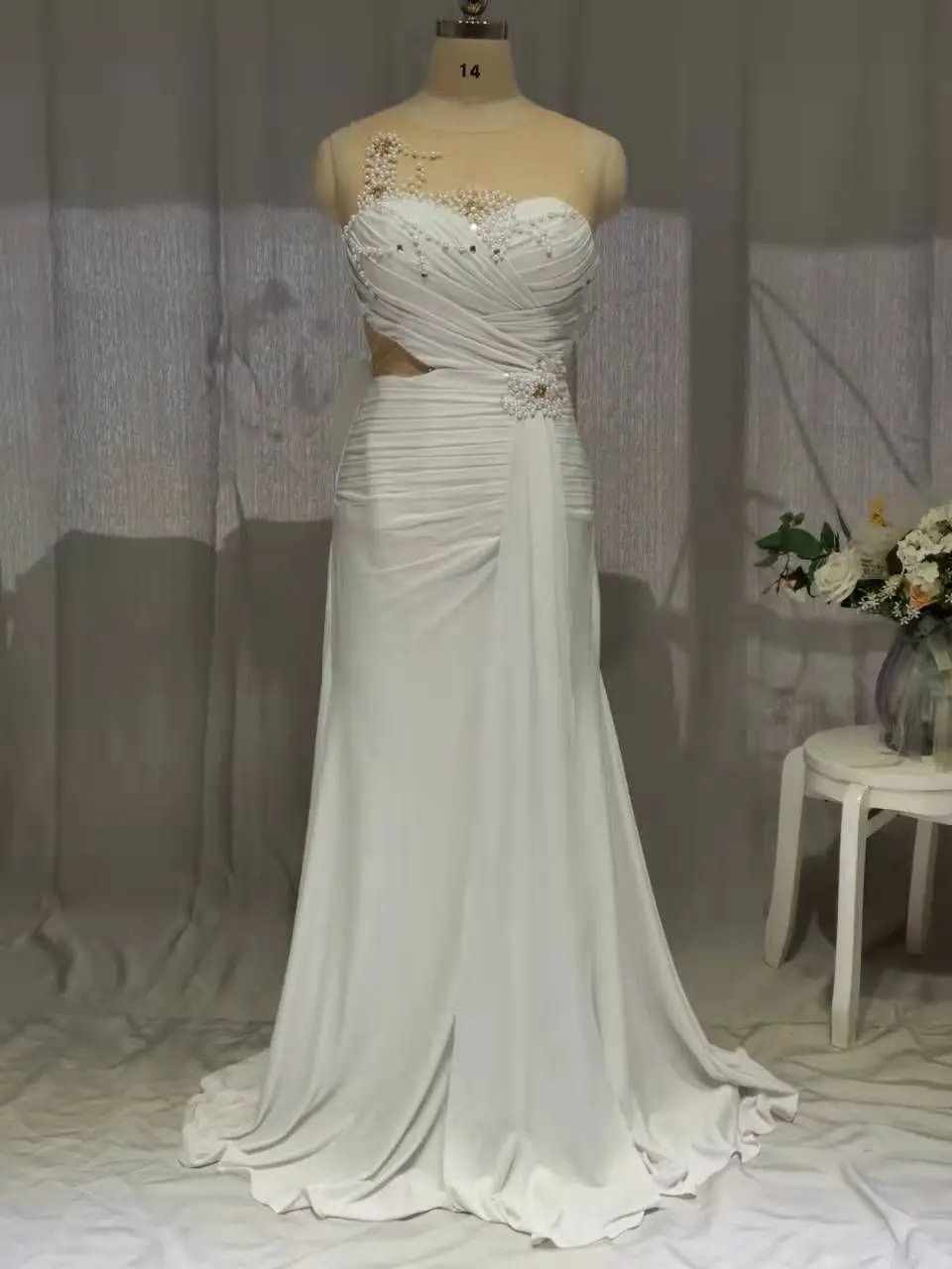 Mermaid Evening Dresses 2022 Special Occasion Crystal Pearls Floor Length Elegant Formal Gowns For Women Ivory Spandex Dress