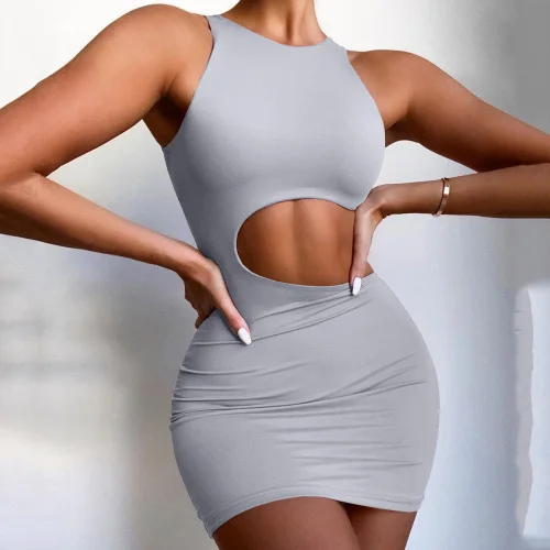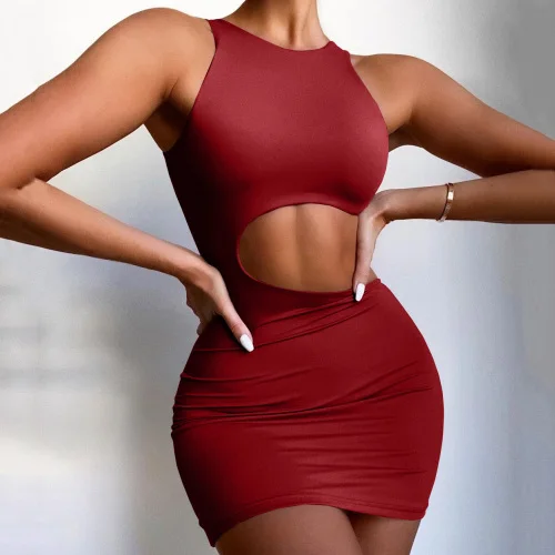 Mini Dress Women's Fashion Sleeveless Bodycon Dress Slin Fit Onepiece Dress Daily Solid Sexy Dress Summer Party Dress