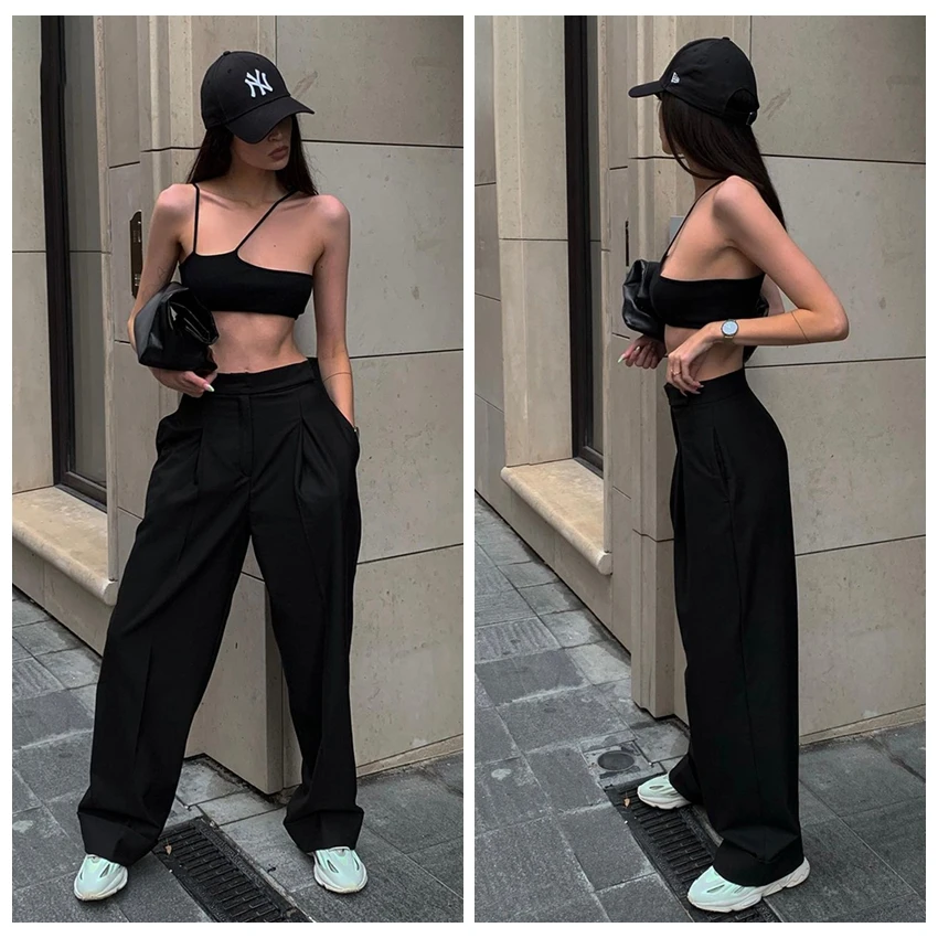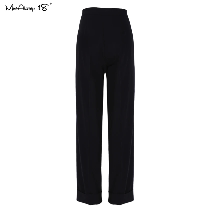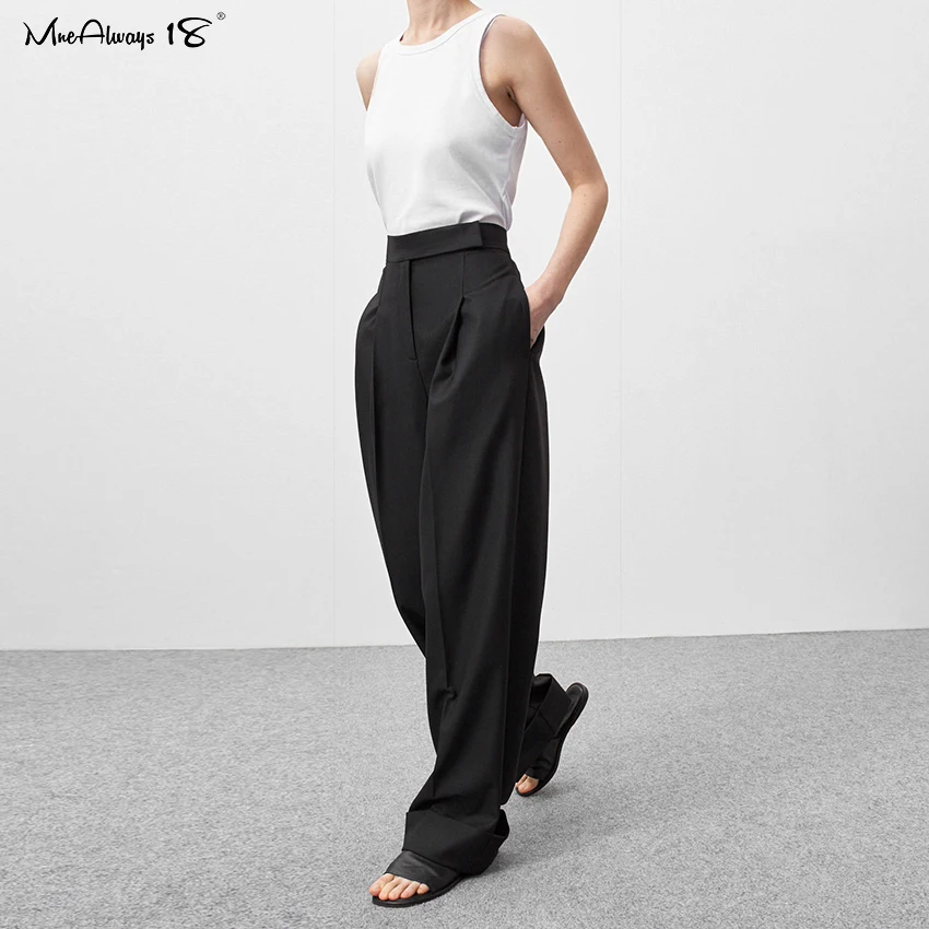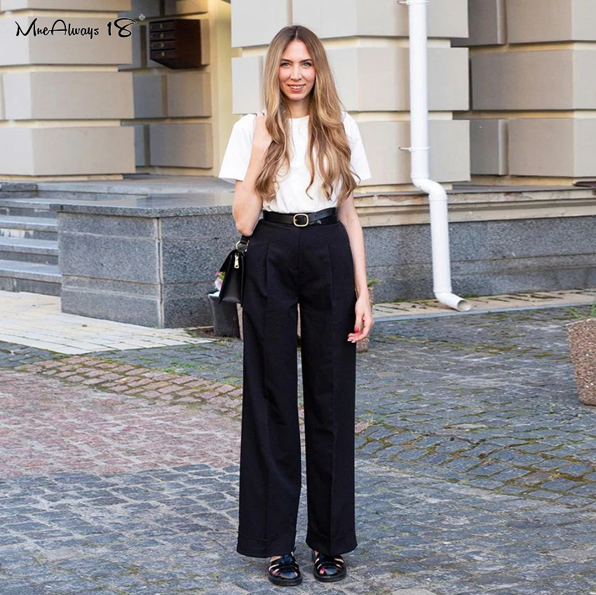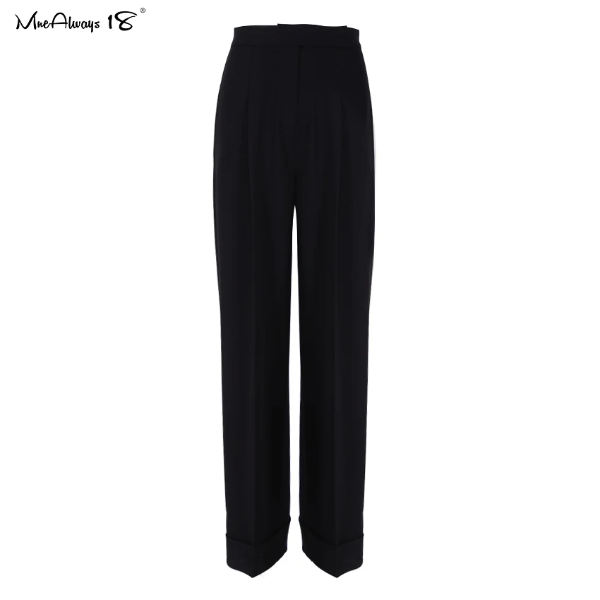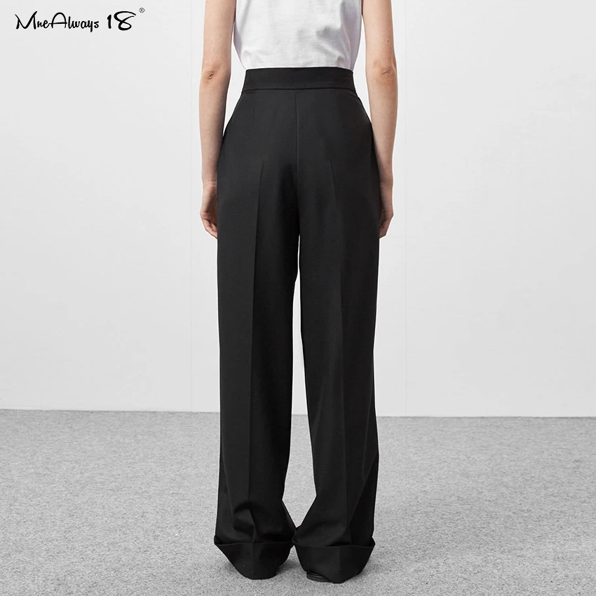 Mnealways 18 Spring Summer Black Ladies Office Trousers Women High Waist Pants Pockets Female Pleated Wide Leg Pants Solid 2022