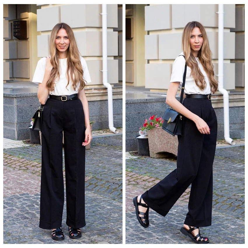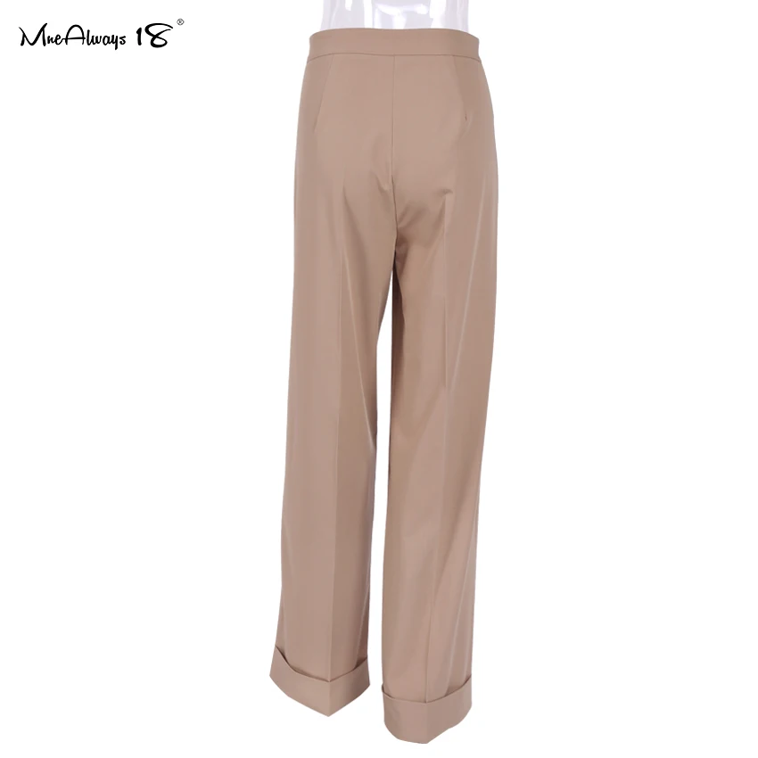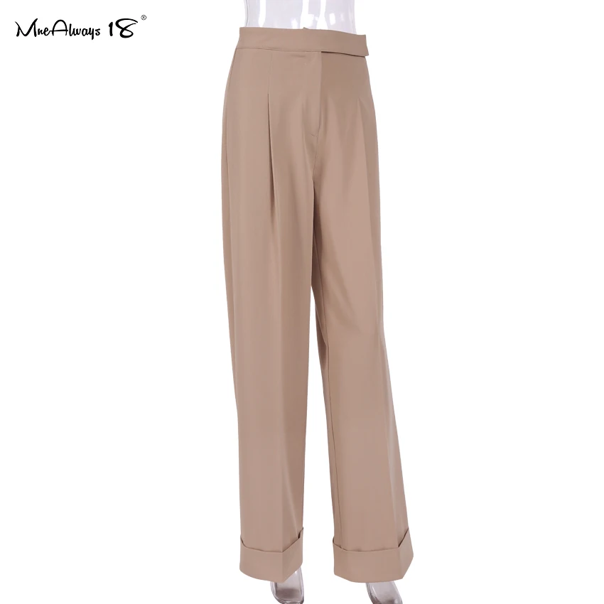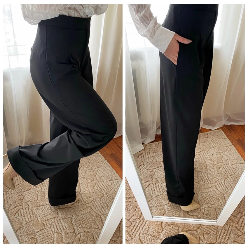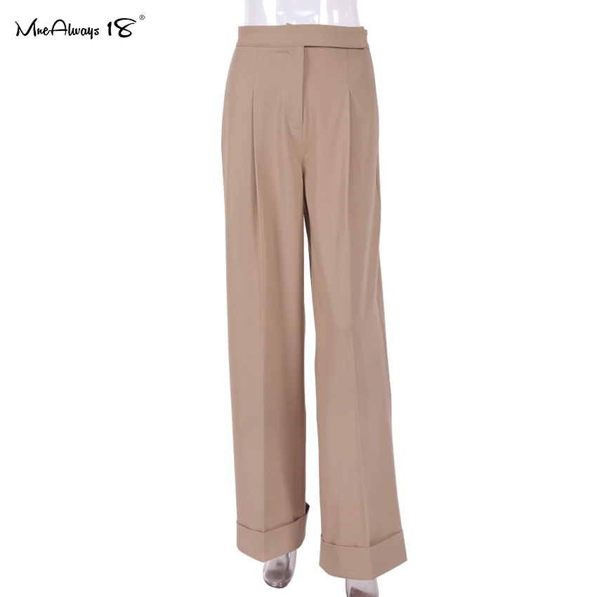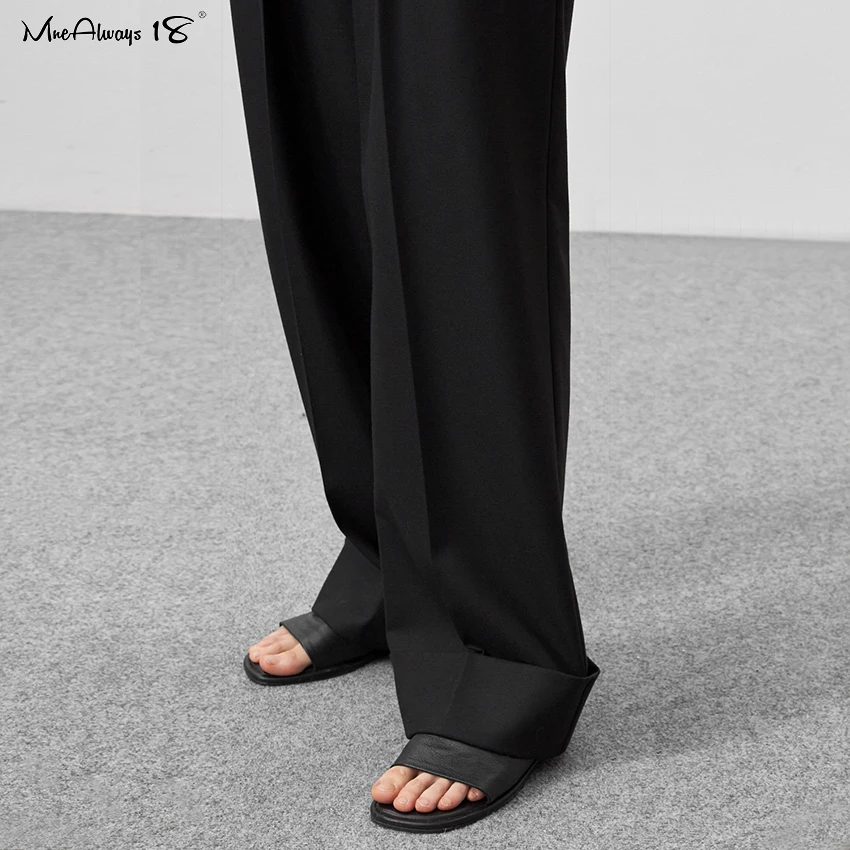 Mnealways 18 Spring Summer Black Ladies Office Trousers Women High Waist Pants Pockets Female Pleated Wide Leg Pants Solid 2022