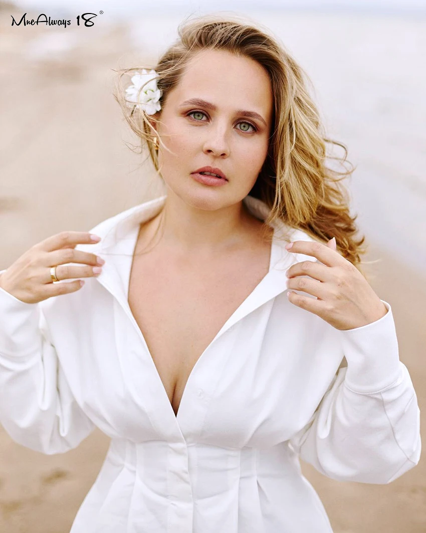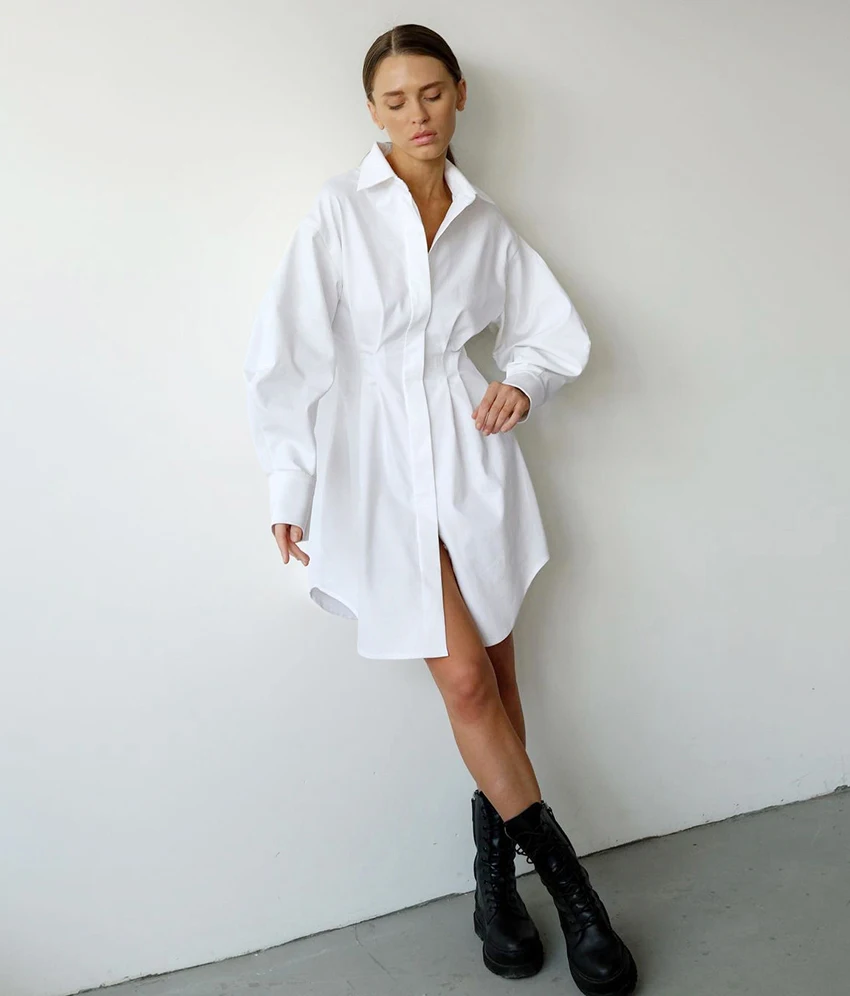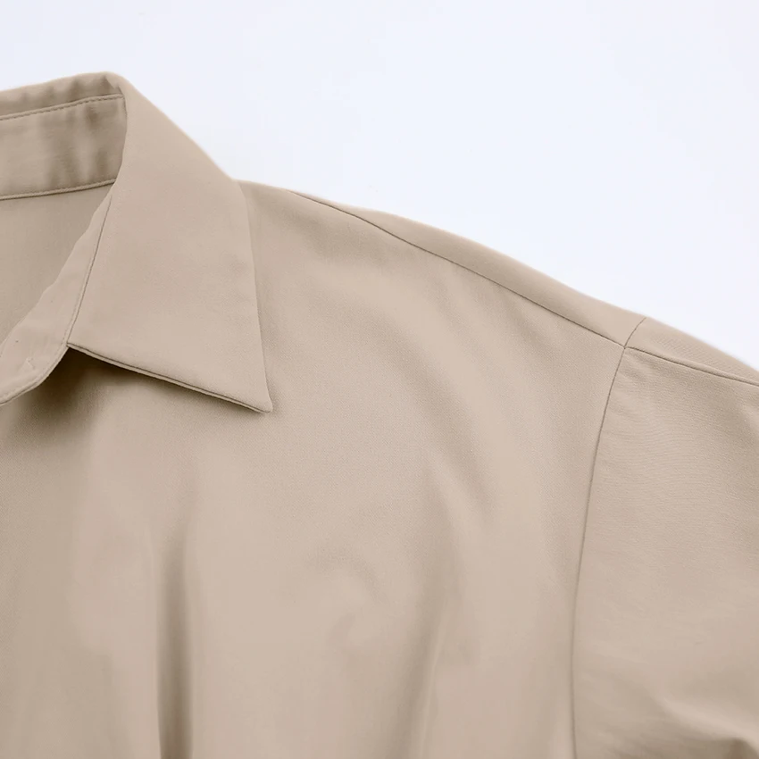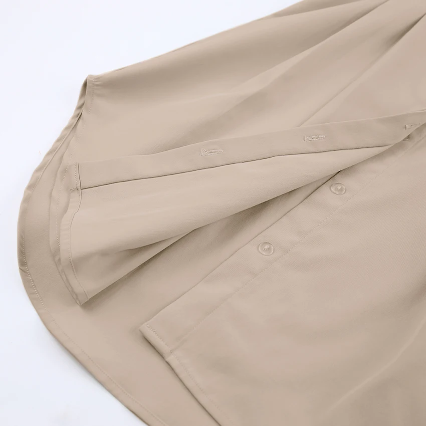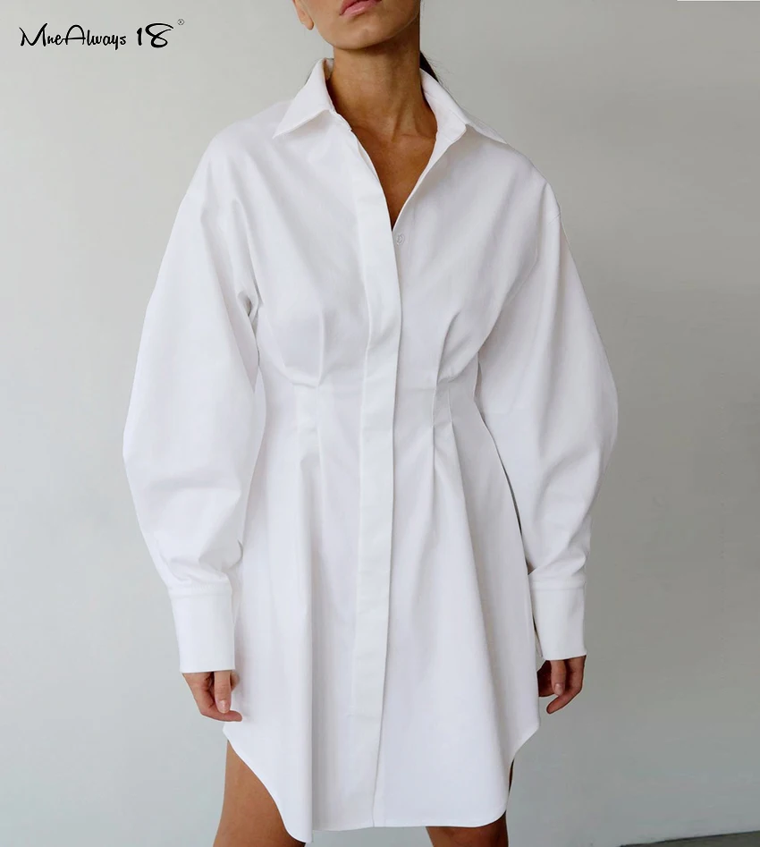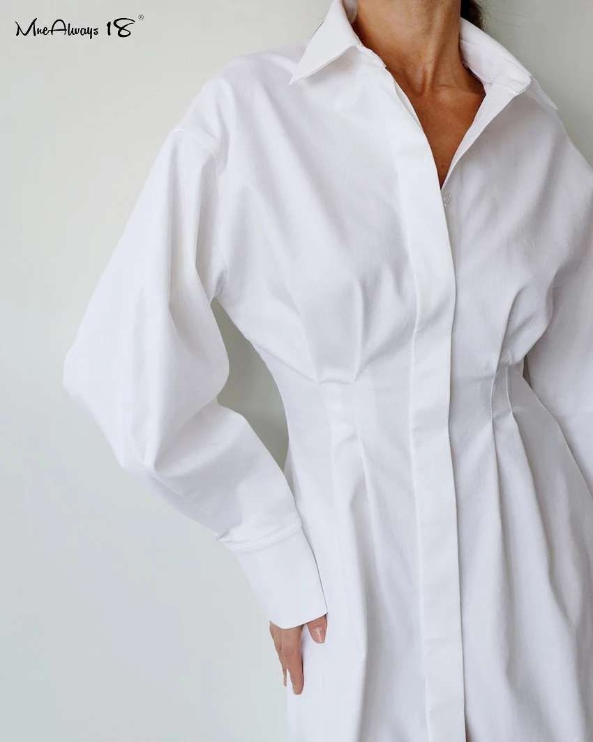 Mnealways18 Autumn Winter Bodycon Dress Women Khaki Long Sleeve Pleated Shirt Dress Office Ladies Solid Lapel Casual Mini Dresss