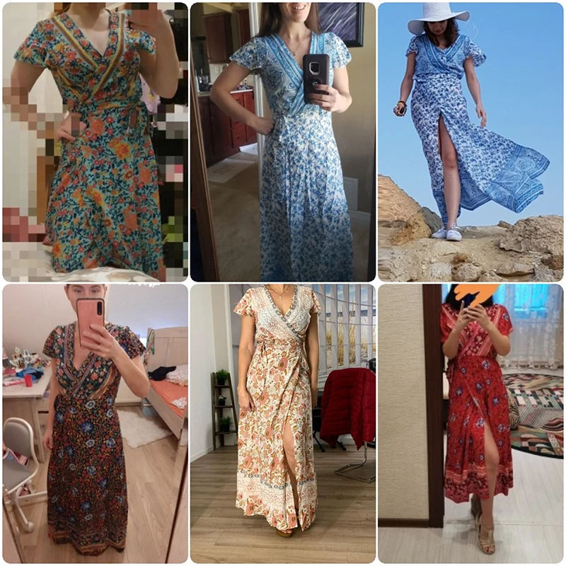 • Nadafair estampado floral de la vendimia vestido boho mujeres sexy maxi beach summer dress vestidos manga corta sash split retro vestido largo