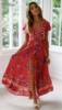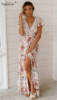 Nadafair Vintage Floral Maxi Dresses Elegant Beach Sash Sexy V Neck Split Print Tunic Long Summer Boho Dress Women Vestidos