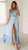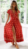Nadafair Vintage Floral Print Boho Dress Women Sexy Maxi Beach Summer Dress Vestidos Short Sleeve Sash Split Retro Long Dress