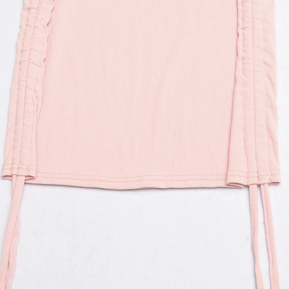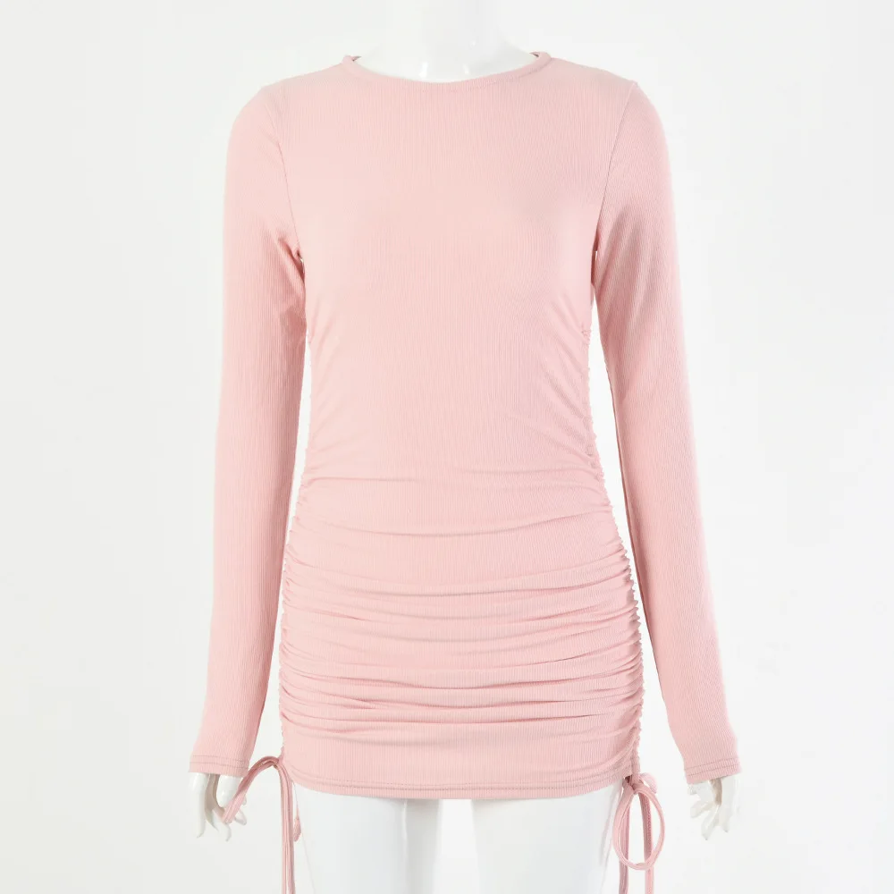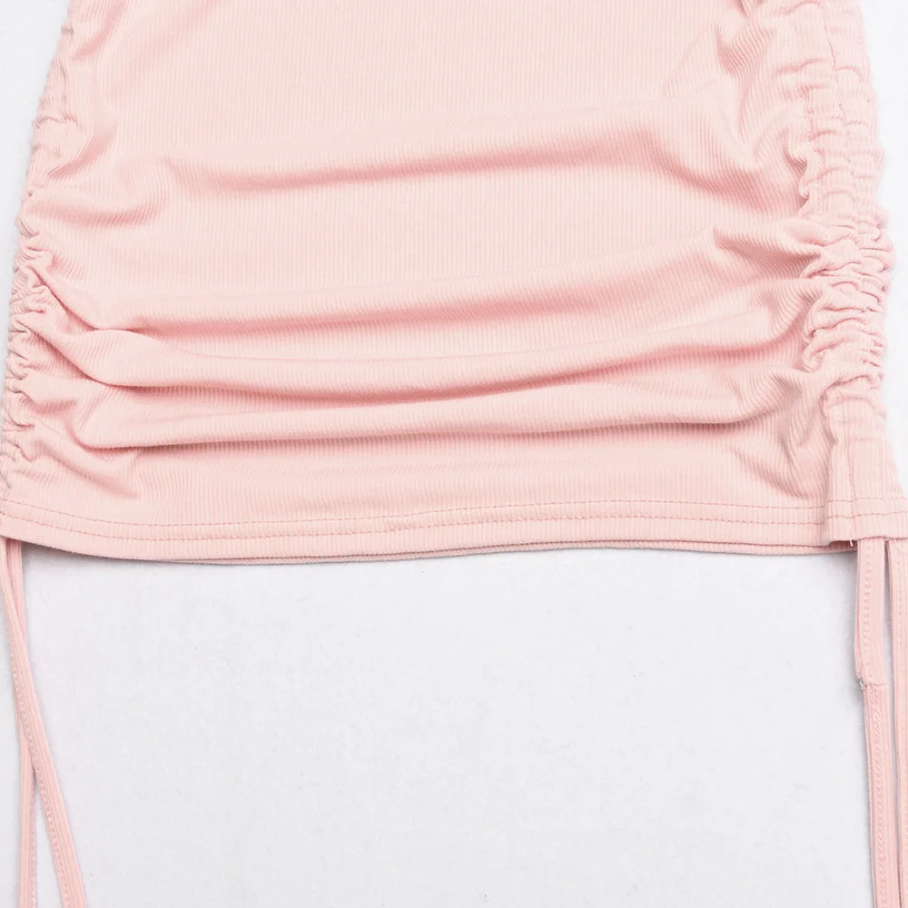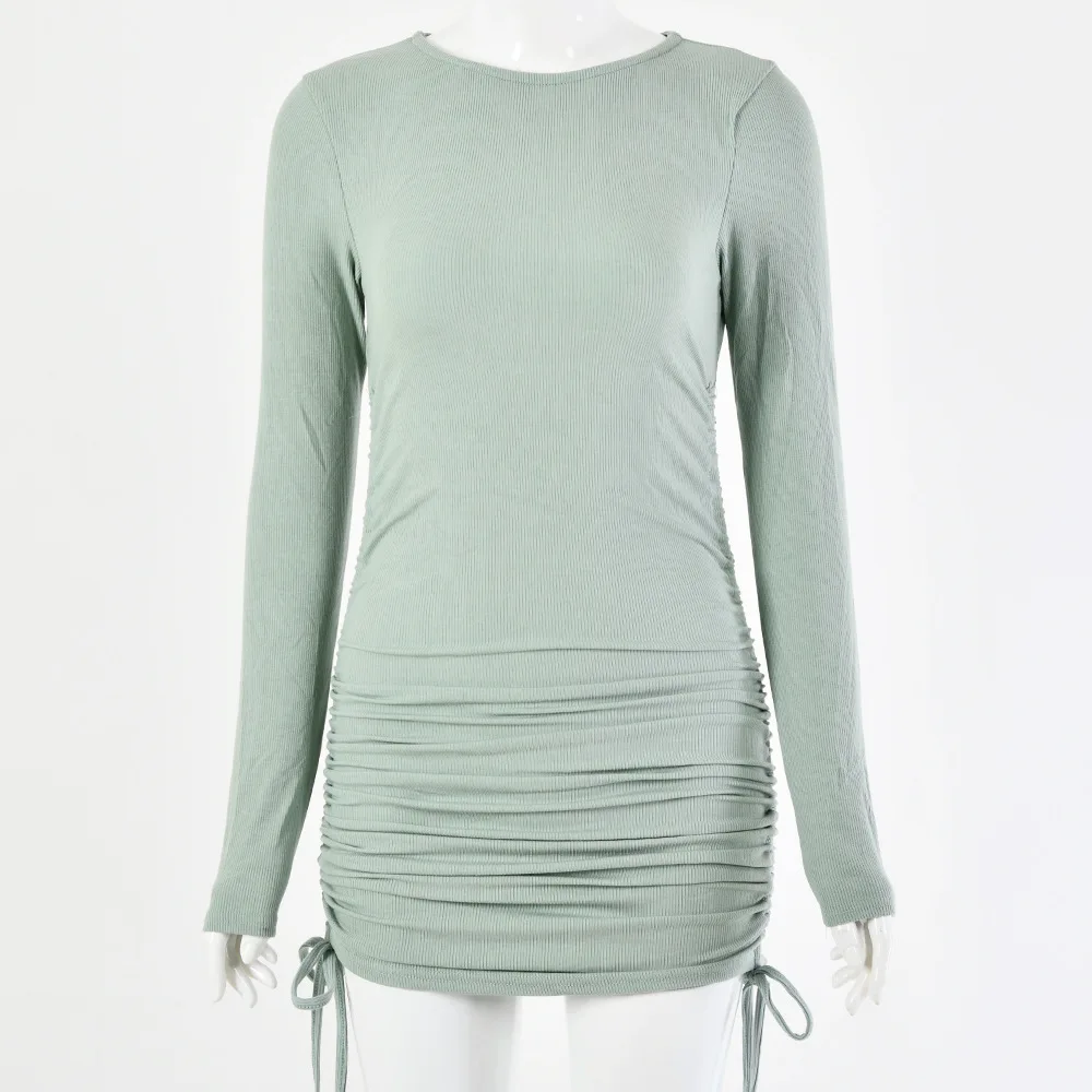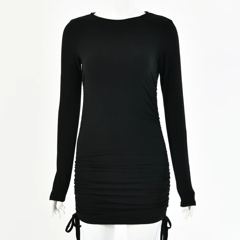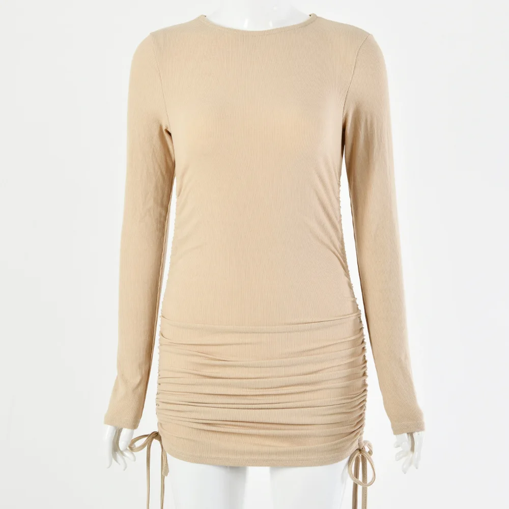 Neck Autumn Winter 2021 Bandage Dress Women Sexy Bodycon Long Sleeve Khaki White Drawstring Mini Ruched Party Dresses