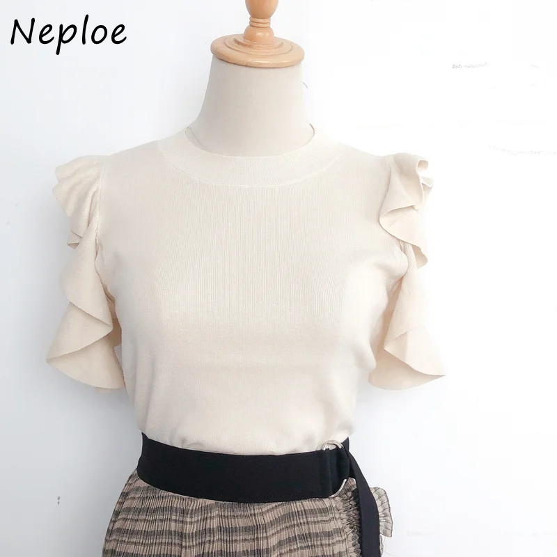 Neploe O Neck Shoulder Strapless Pullover Knit Sweater Women O Neck Pullover Long Sleeve Pull Femme Spring Summer Solid Sueter