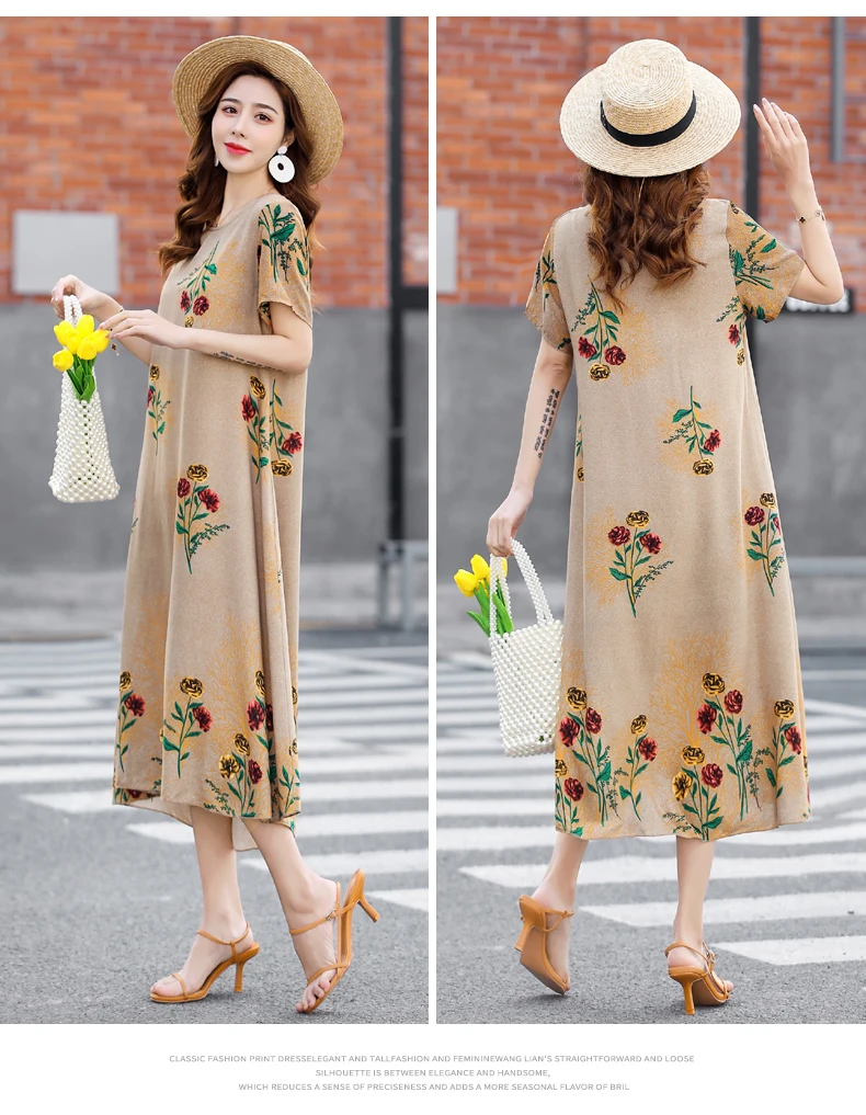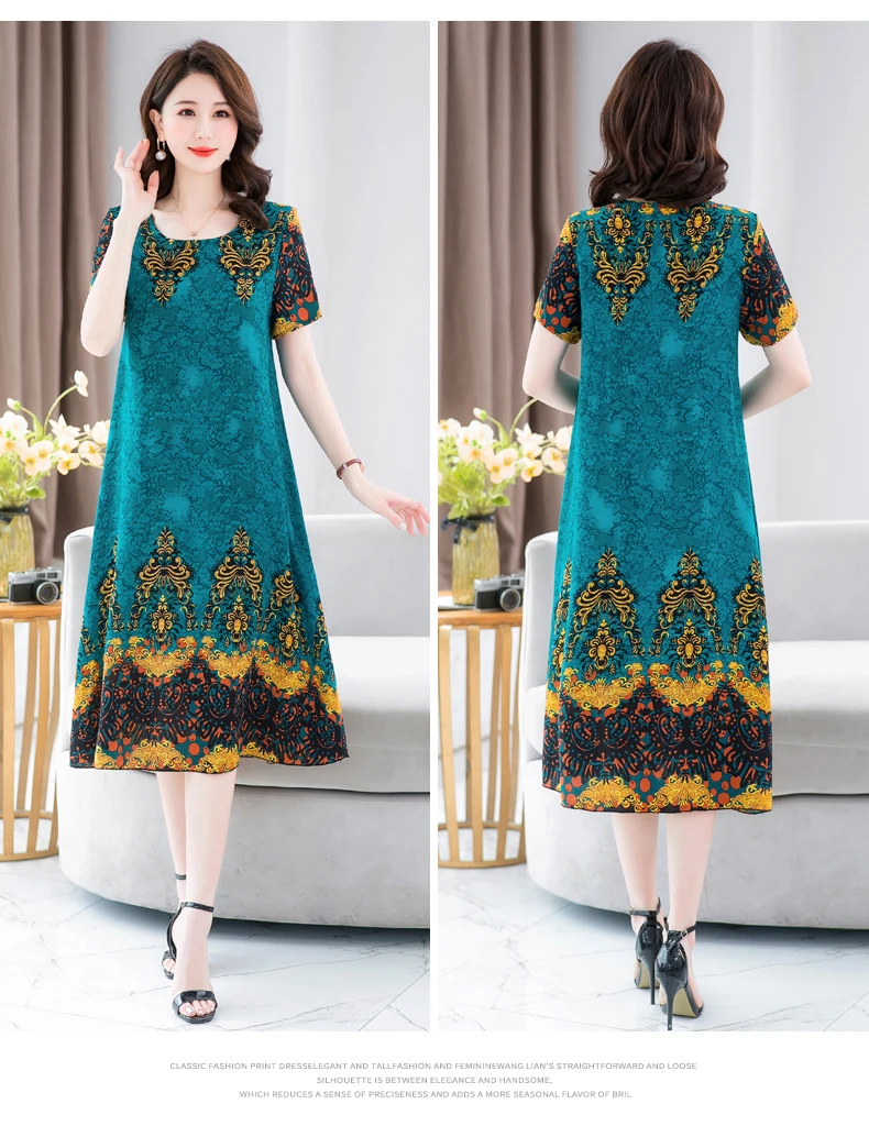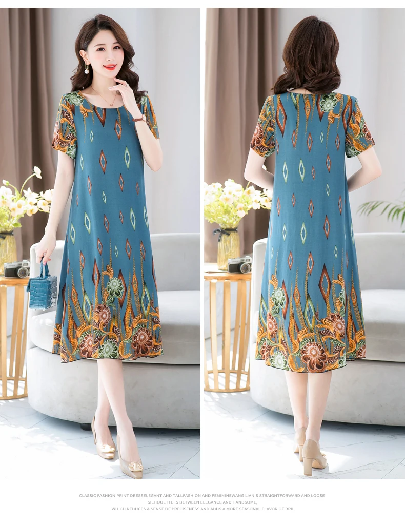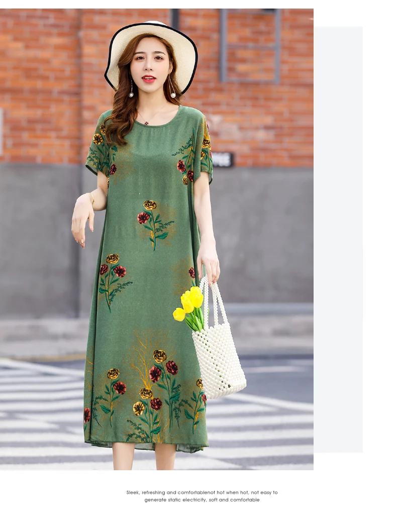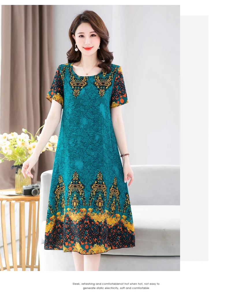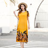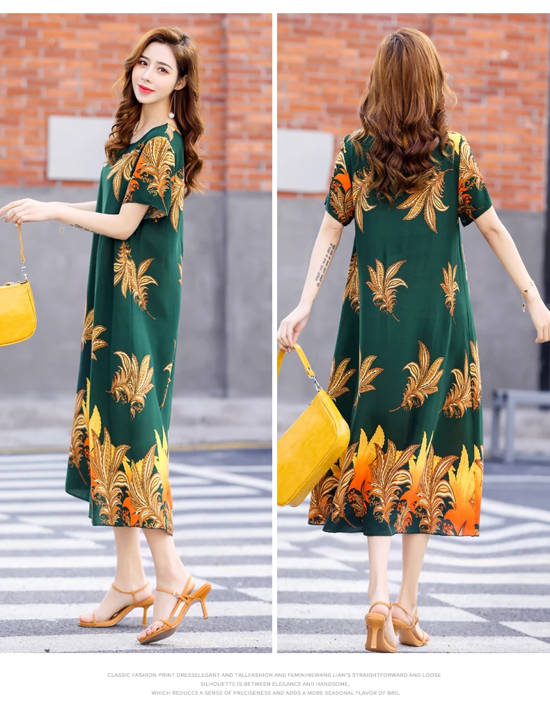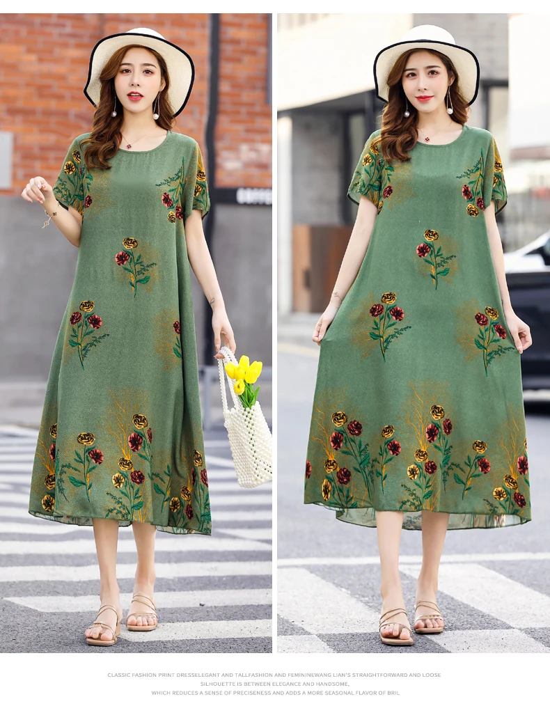 New 2022 Summer Dress For Long Vintage Loose Women Elegant Short Sleeve Dress Casual O-neck Dresses Printing Woman Clothing