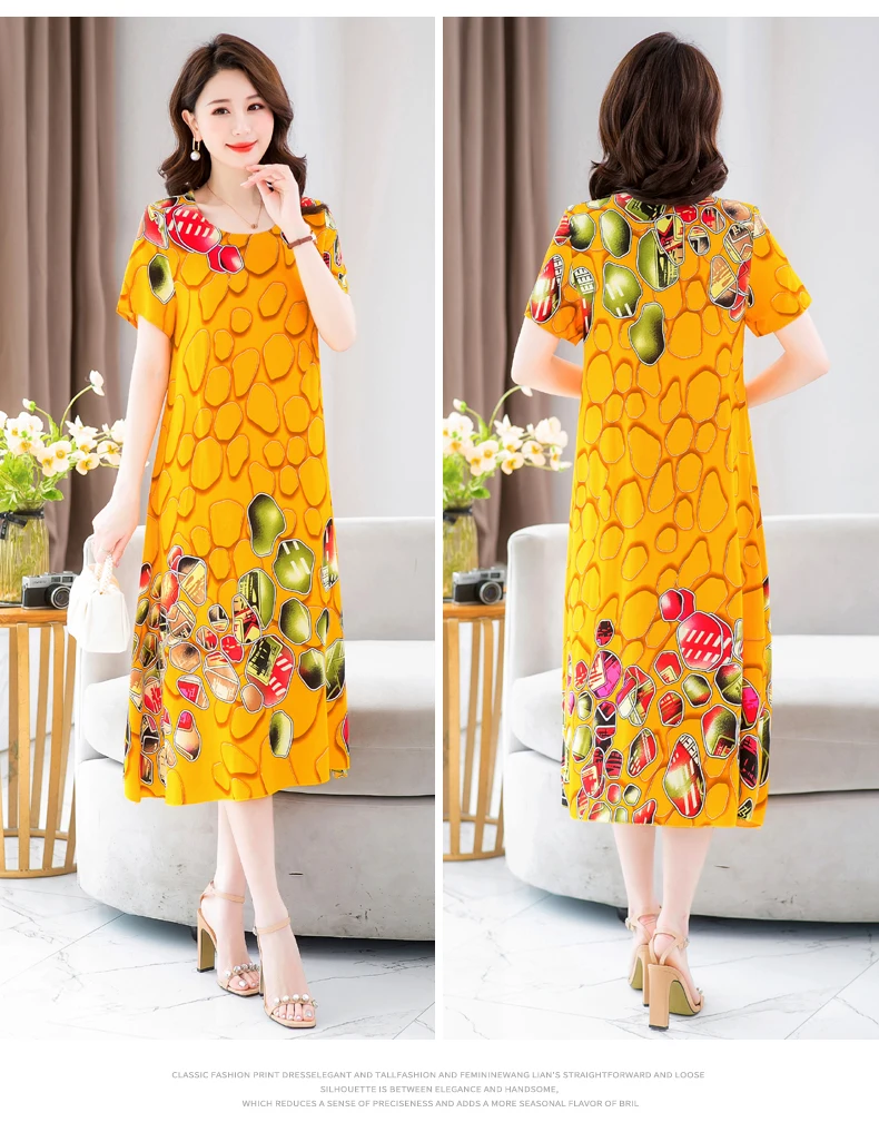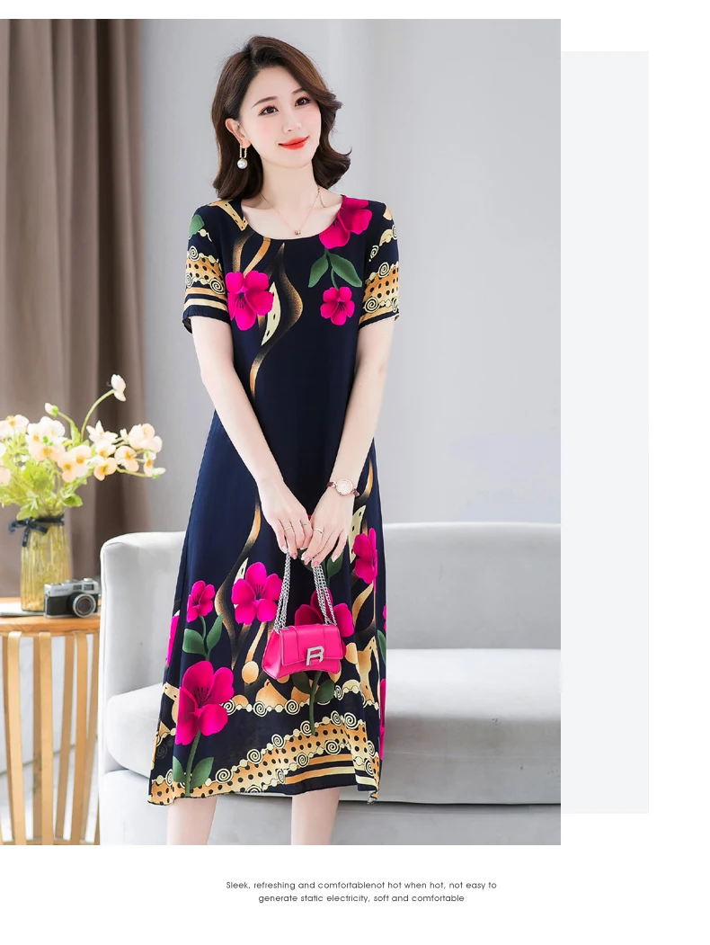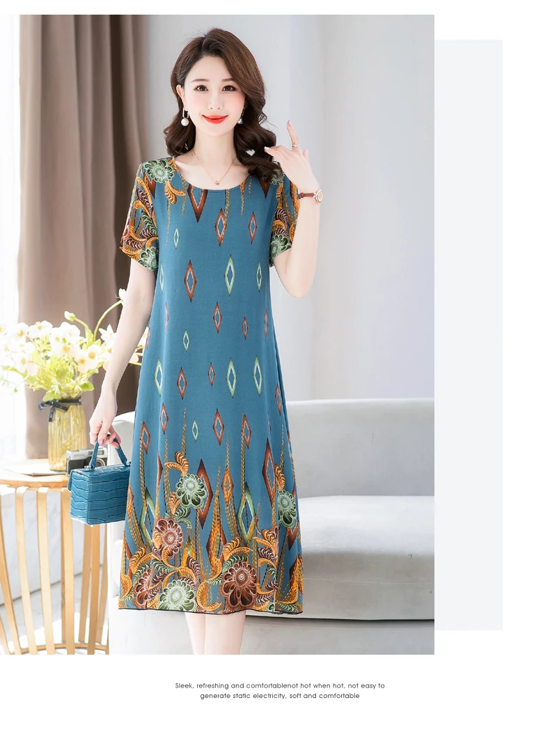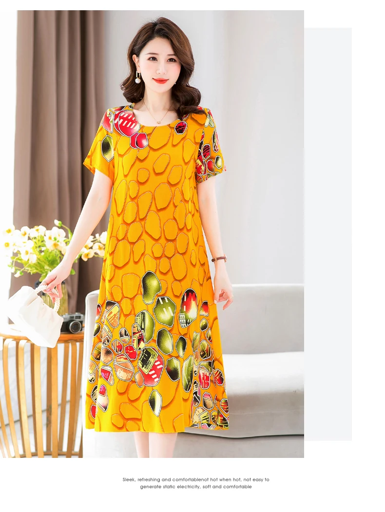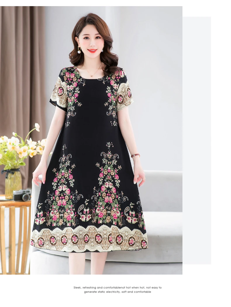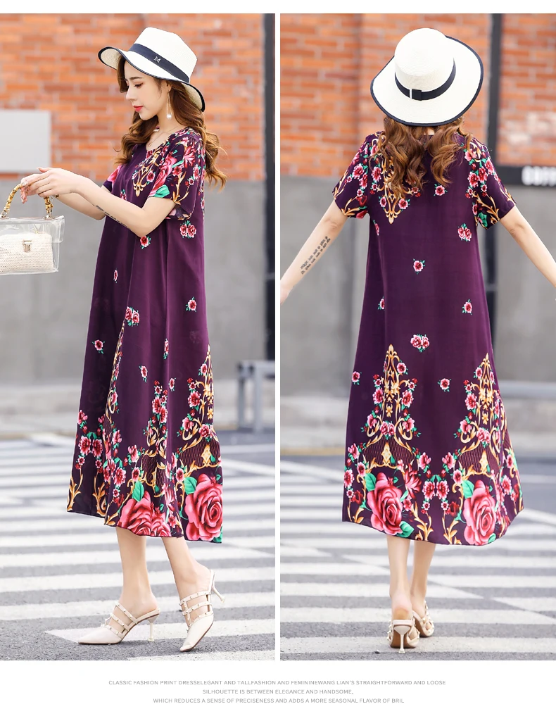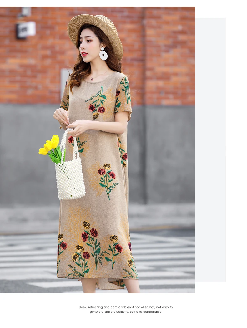 New 2022 Summer Dress For Long Vintage Loose Women Elegant Short Sleeve Dress Casual O-neck Dresses Printing Woman Clothing