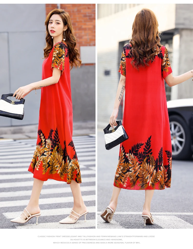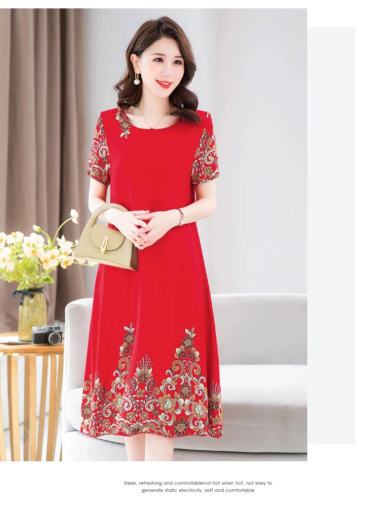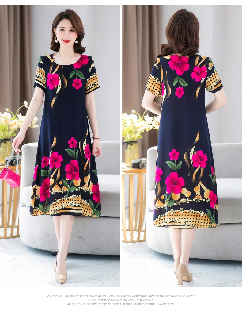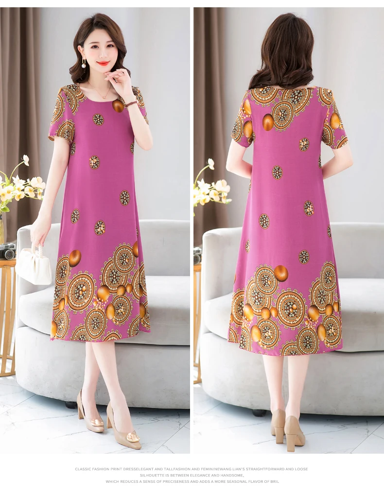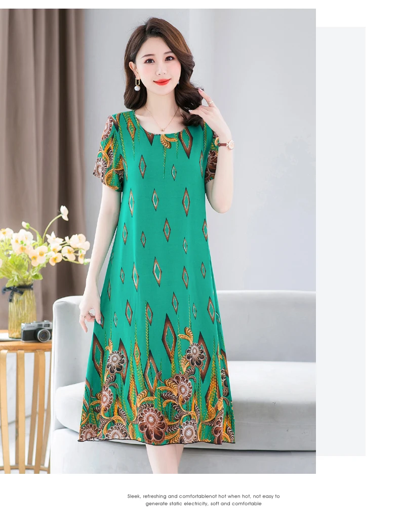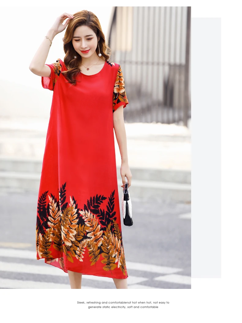New 2022 Summer Dress For Long Vintage Loose Women Elegant Short Sleeve Dress Casual O-neck Dresses Printing Woman Clothing