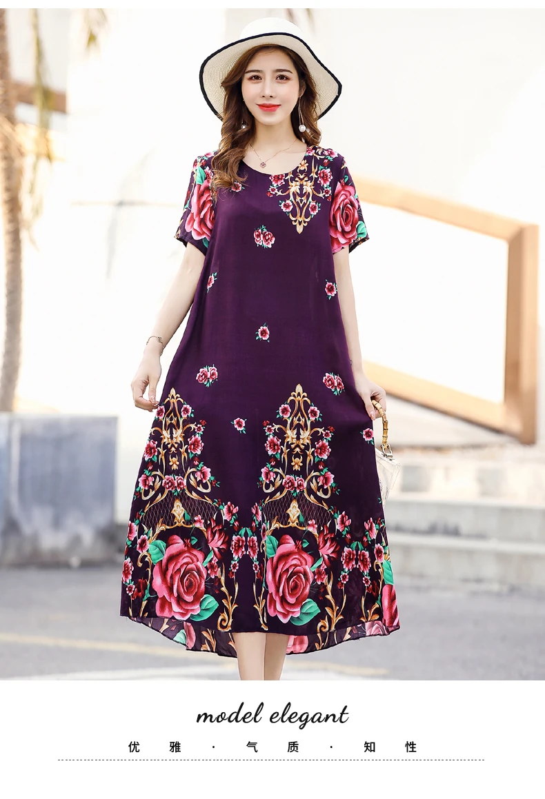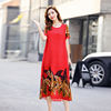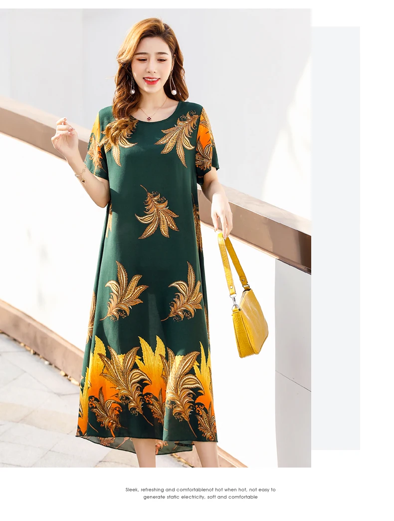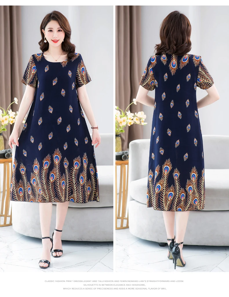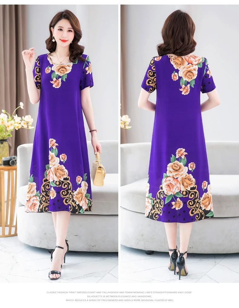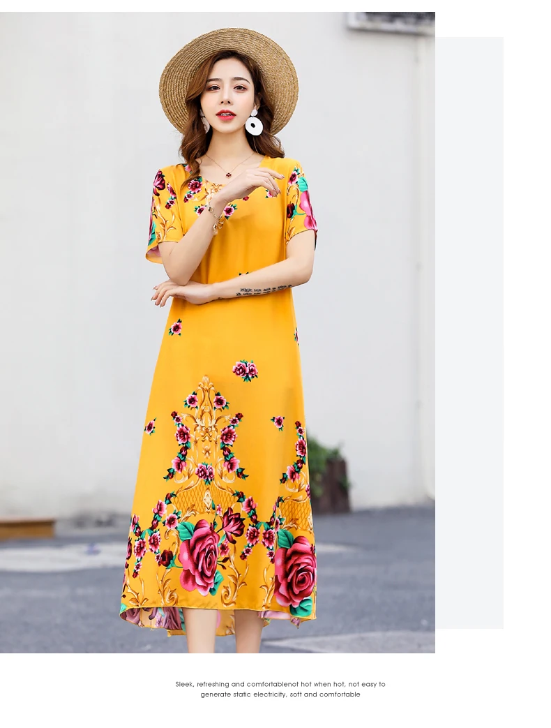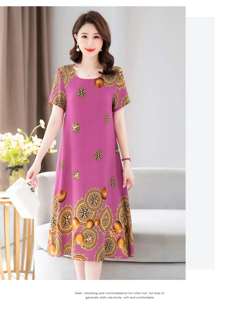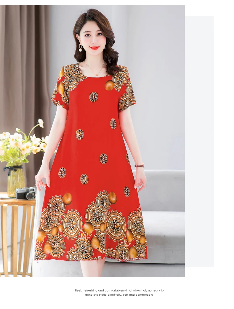 New 2022 Summer Dress For Long Vintage Loose Women Elegant Short Sleeve Dress Casual O-neck Dresses Printing Woman Clothing