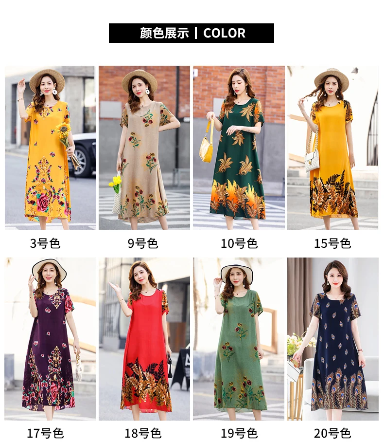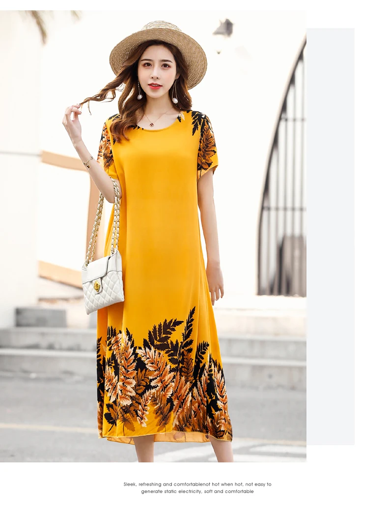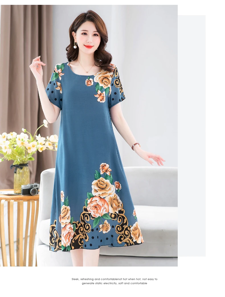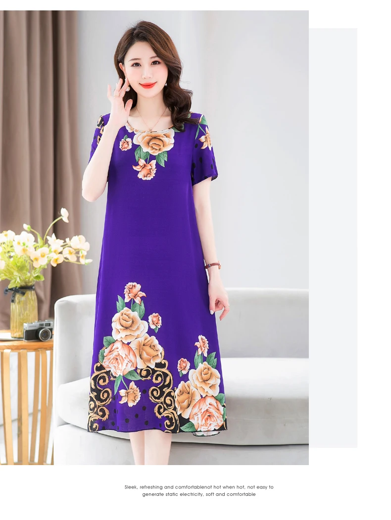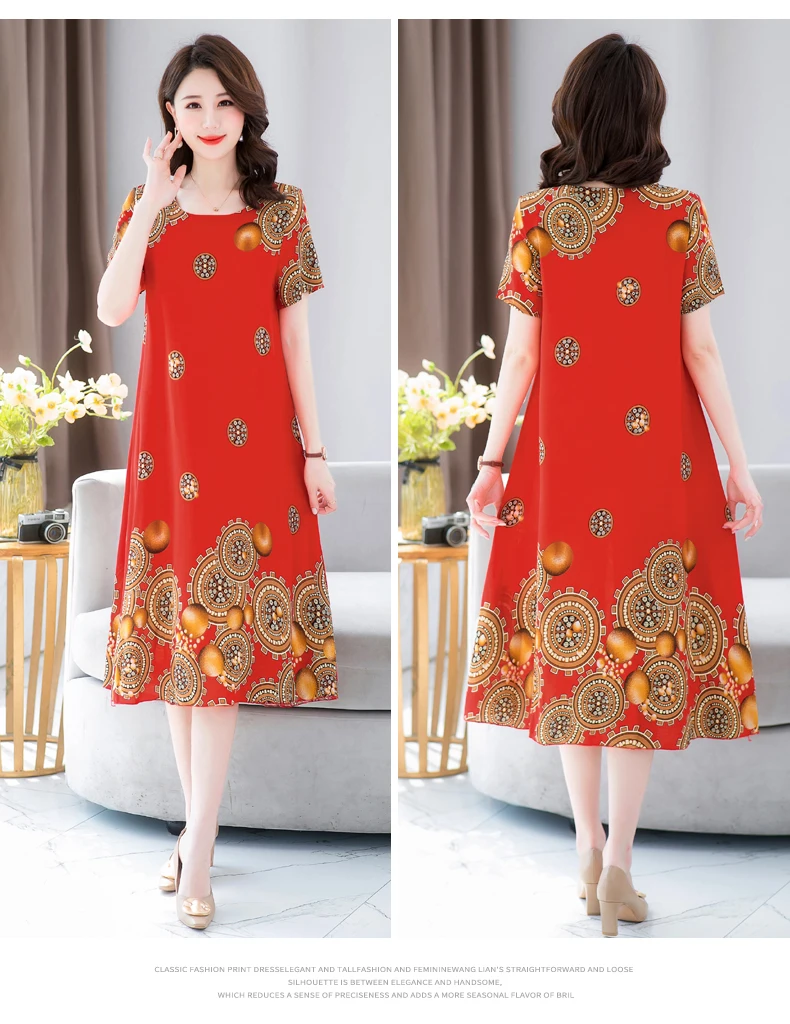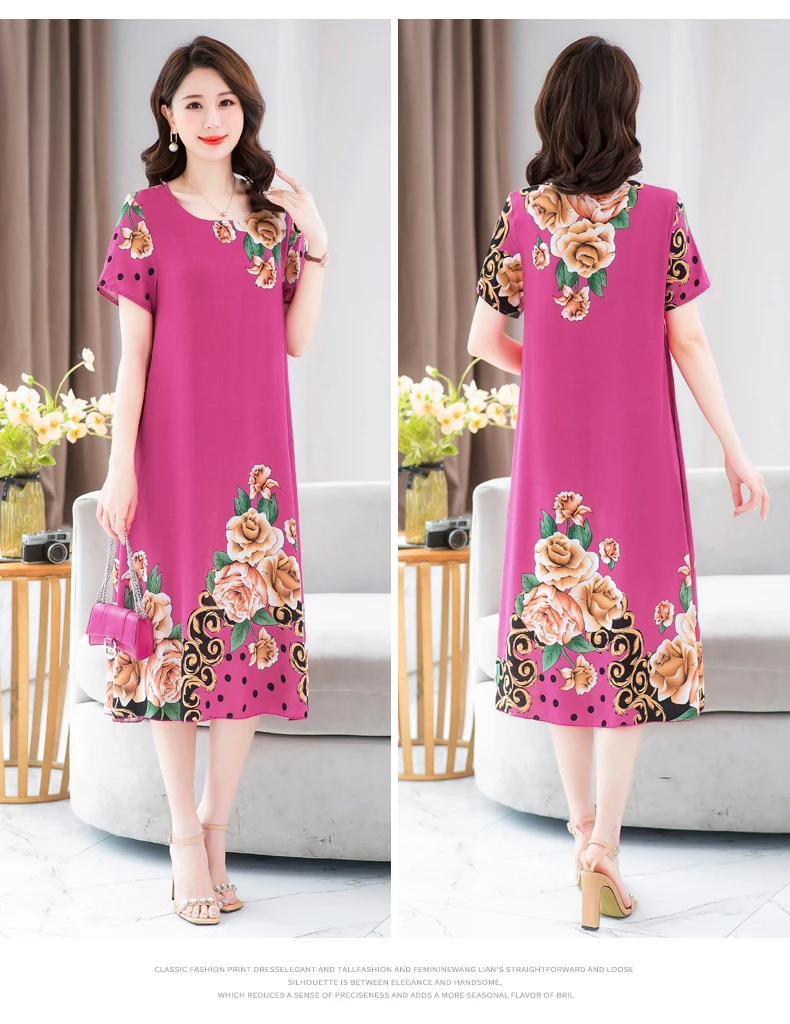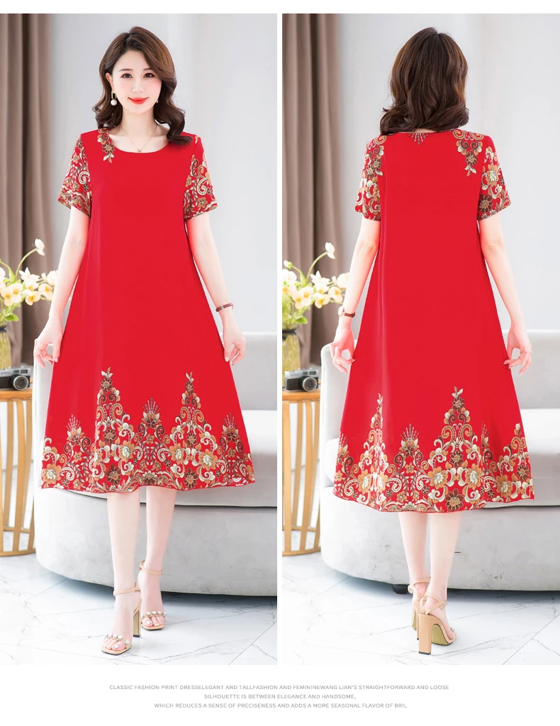 New 2022 Summer Dress For Long Vintage Loose Women Elegant Short Sleeve Dress Casual O-neck Dresses Printing Woman Clothing