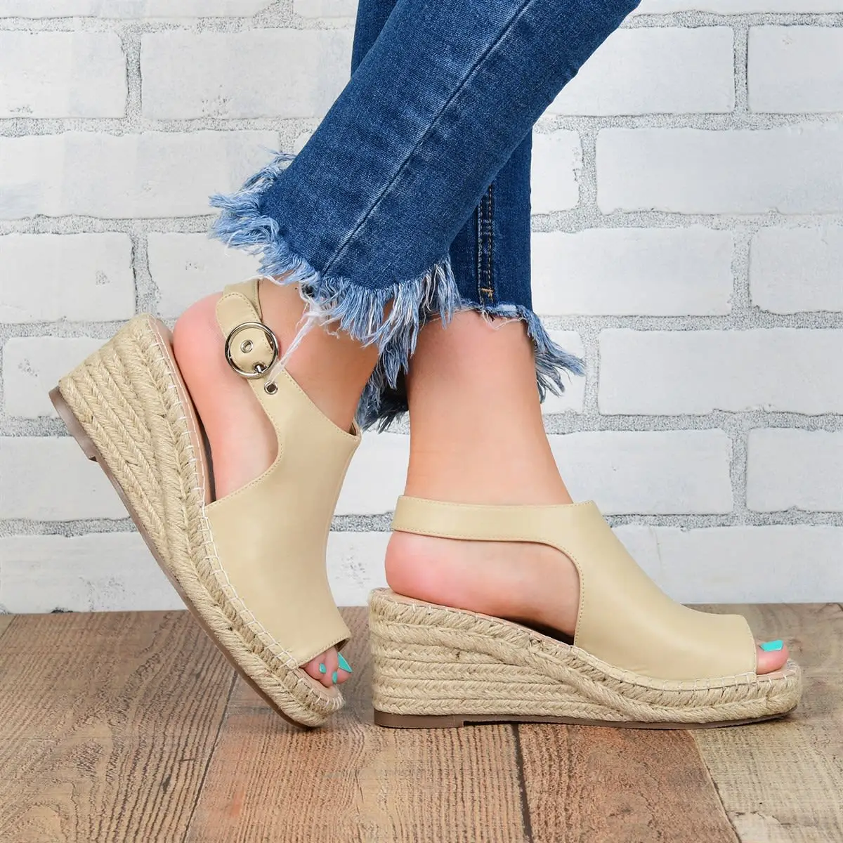New 2022 Women High Heel Sandals Wedges Shoes Open-toe Leather Sandals Summer Women Open-toe Platform Chaussures Femme
