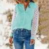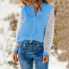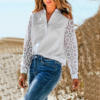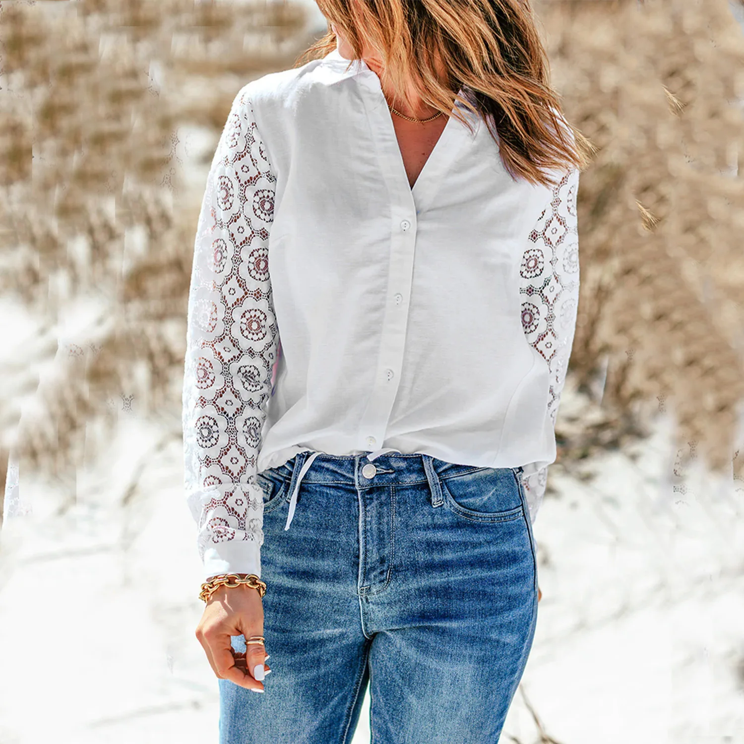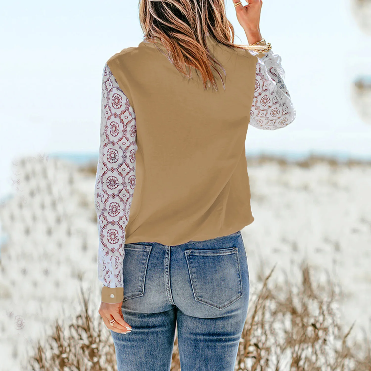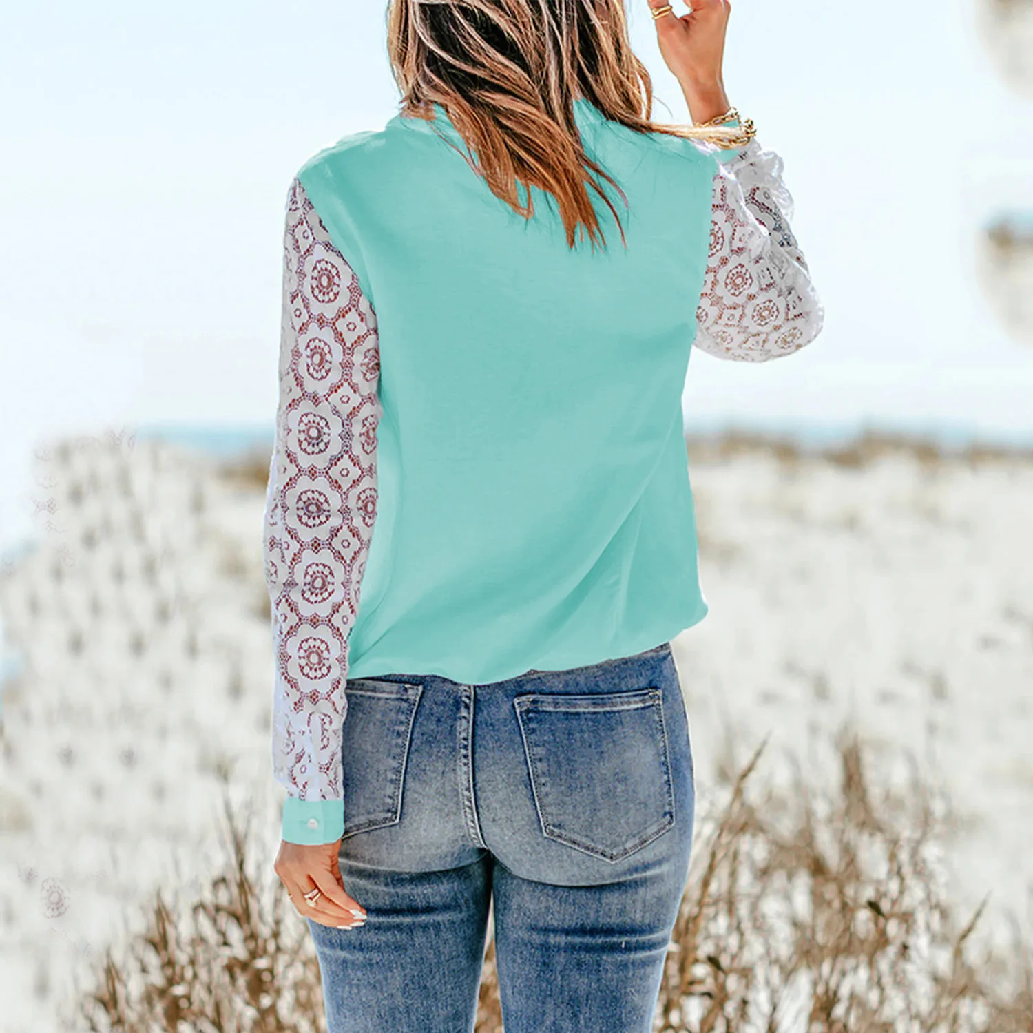 New Arrival Cardigan Women's Solid Color Button Lace Splicing Lone-sleeved Blouse Ladies Casual Turn Down Collar Shirts Tops