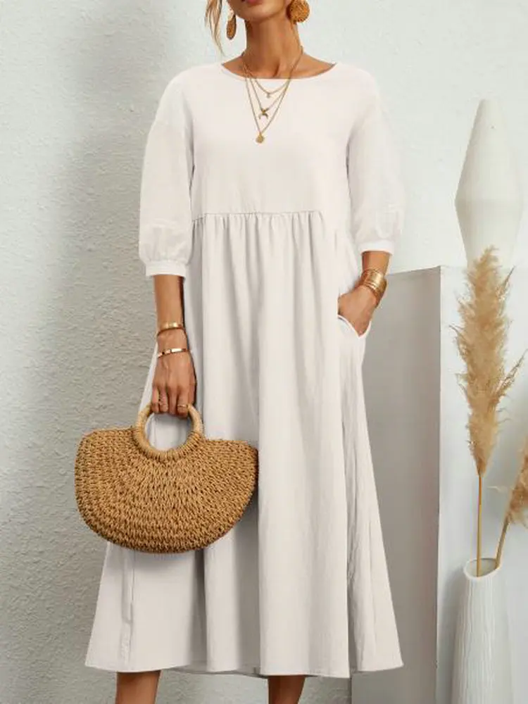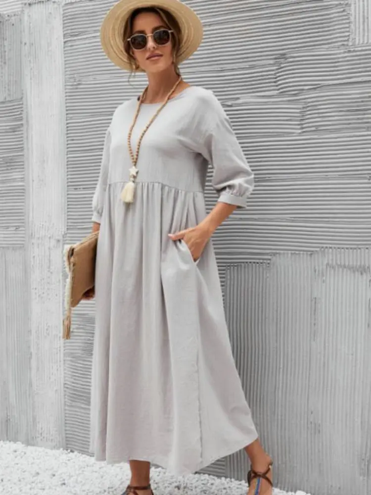 New Arrival Overseas Size Women Middle Sleeve Long Dress Summer ONeck Lady Solid Casual Elegant Cotton Autumn Female Skirt Loose