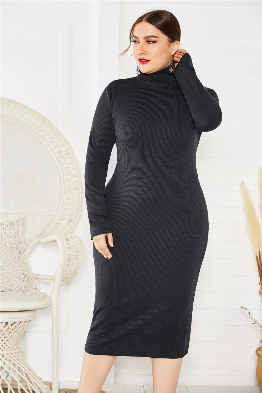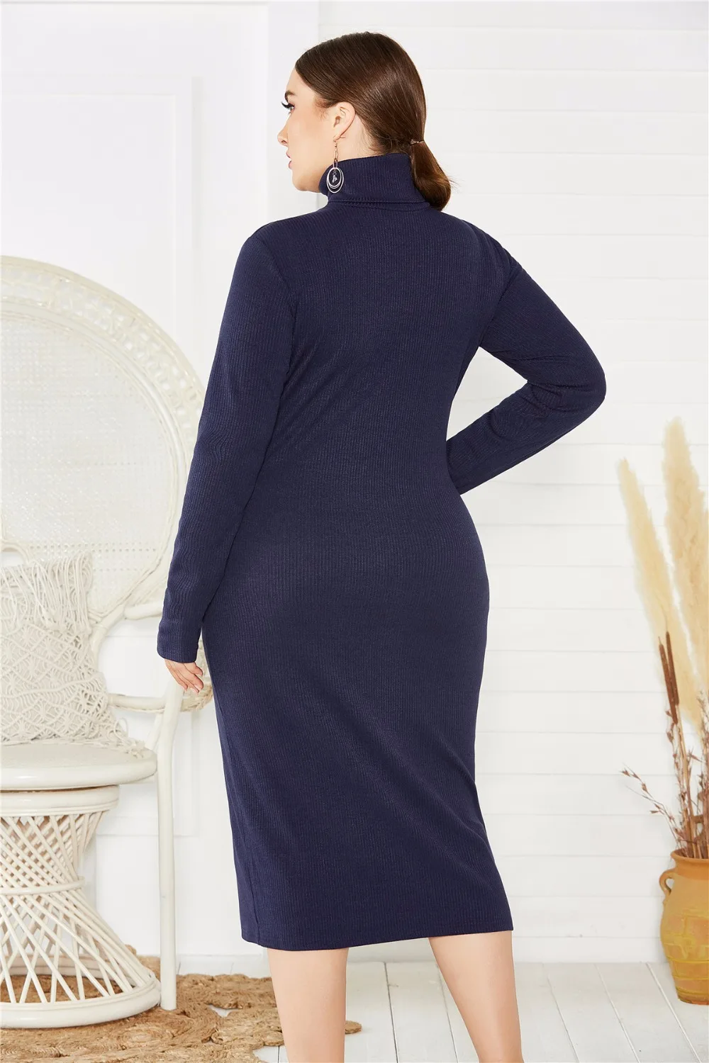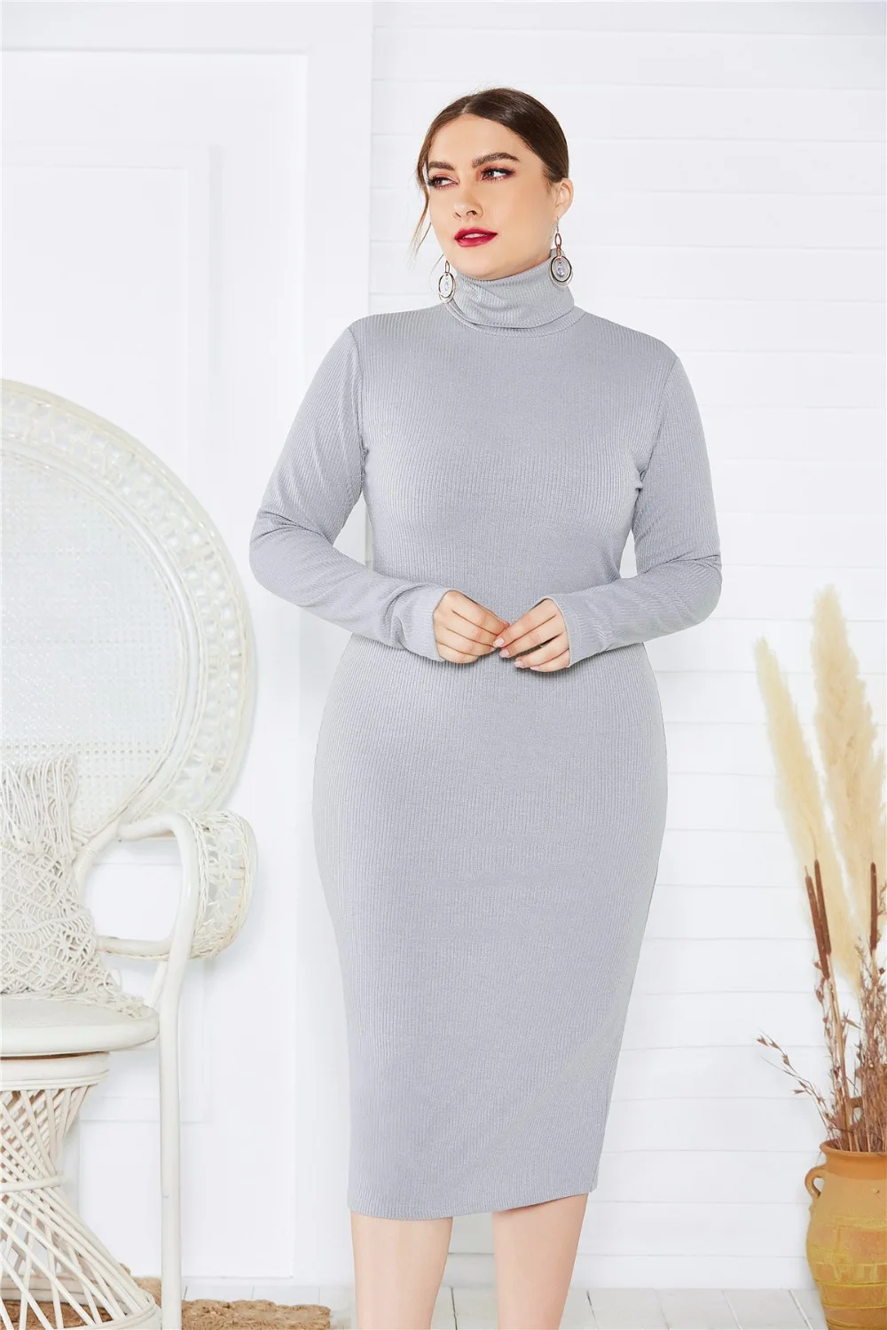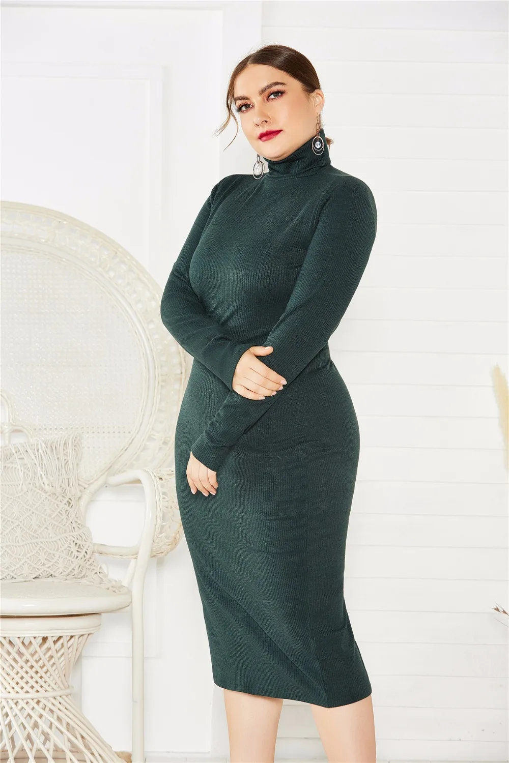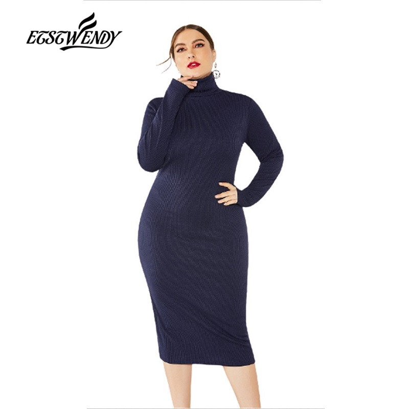 New Autumn Winter Keep Warm Elegant Women Dress High Neck Long Sleeve Slim Knee-length Dress ETSTWENDY Women Clothes Knitted