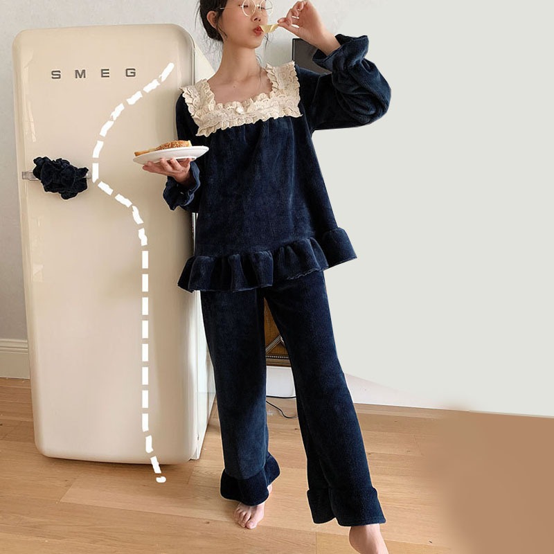 New Autumn Winter Women’s Velvet Pajamas Set Crop Top+Long Pants+Coat 3 Pieces Suit Warm Soft Fleece Homewear Pajamas S-3XL