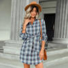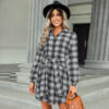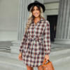 New Casual Belt Tops Femme Fashion Women's Long Sleeve Henley Color Block Plaid Tunic Shirt Dress Autumn Women Tee Shirts Blouse
