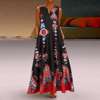New Casual Women Robe Printed Vintage Dress V-neck Sleeveless Big Swing Maxi Dress Pocket ETSTWENDY Women Clothing Long S-New