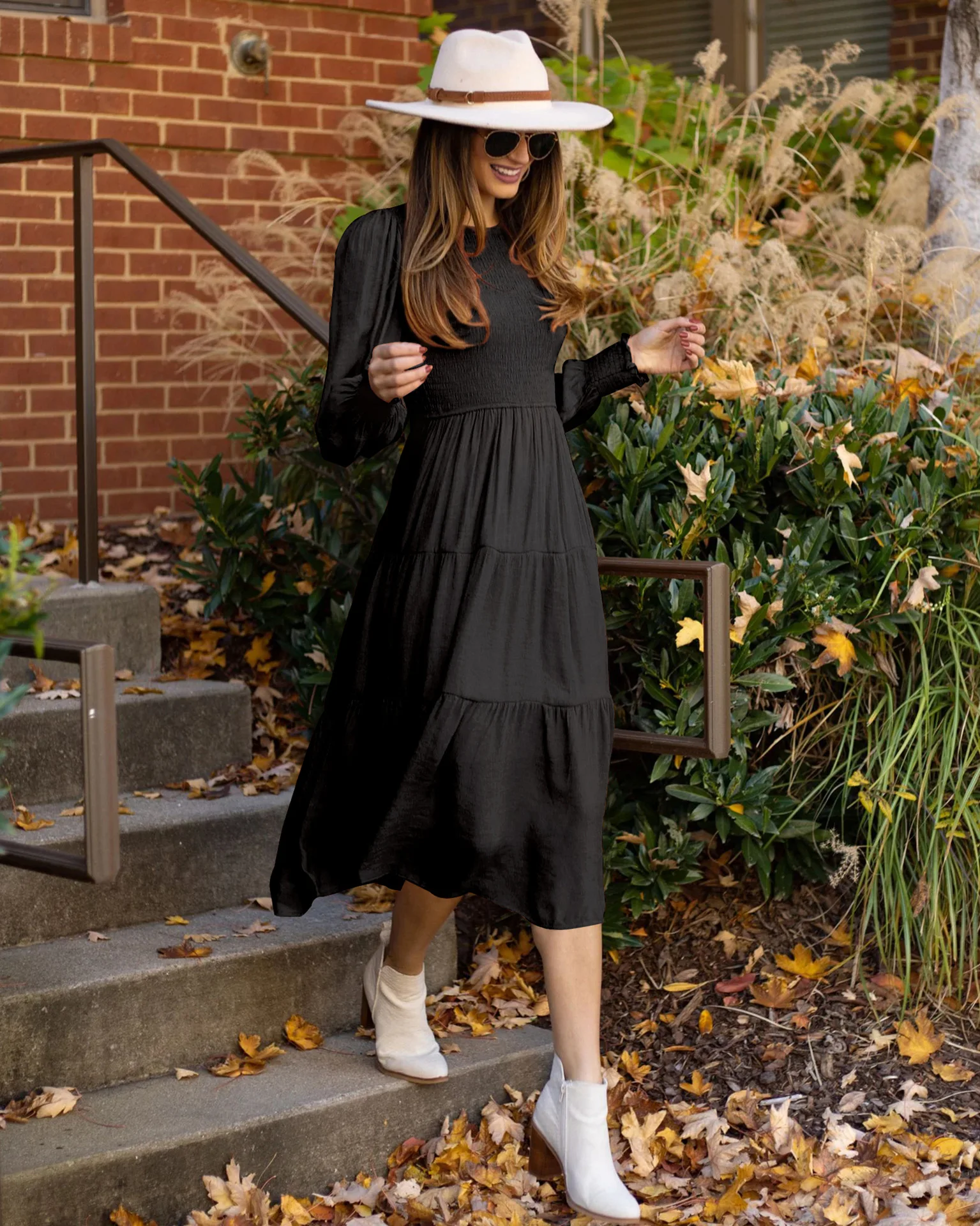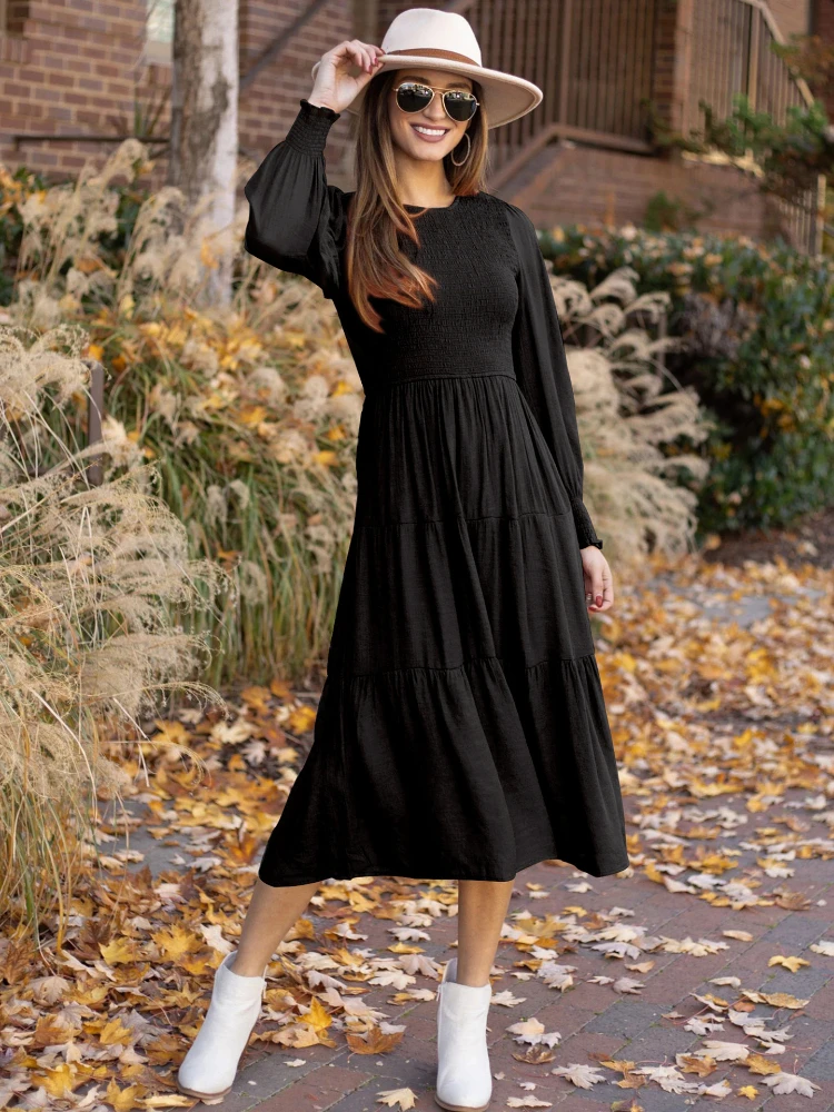 New Fashion Backless Pleated A-line Party Dress Women Spring Autumn Fashion O-neck Long Sleeve Midi Dress Elegant Ladies Vestido