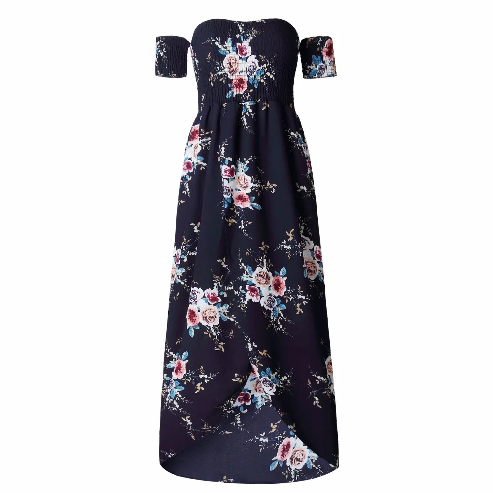 New Fashion Sexy Robe Summer 2019 Women Dresses Strapless Printed Maxi Dress Loose ETSTWENDY Sexy Dress Long Boho Beach Dress