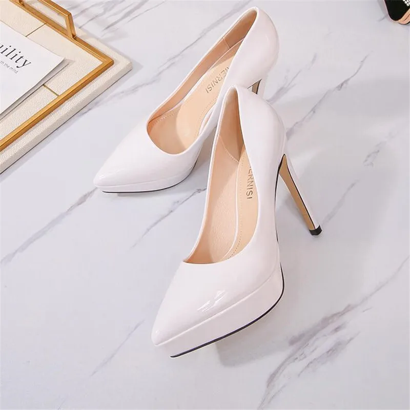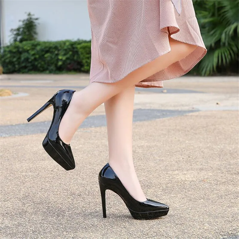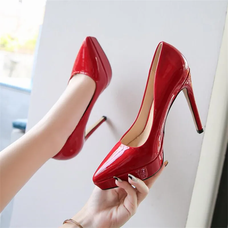 New net red ladies shoes fashion show single shoes princess shoes women's shoes genuine 12CM stilettos large size 35-45 46