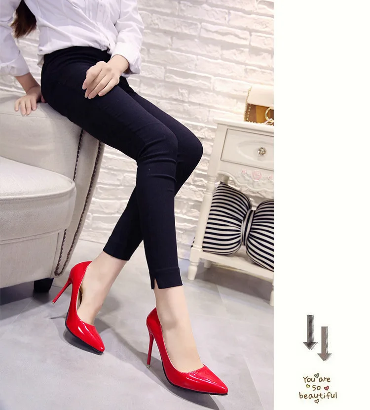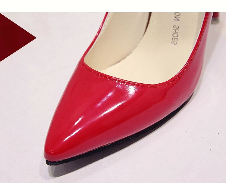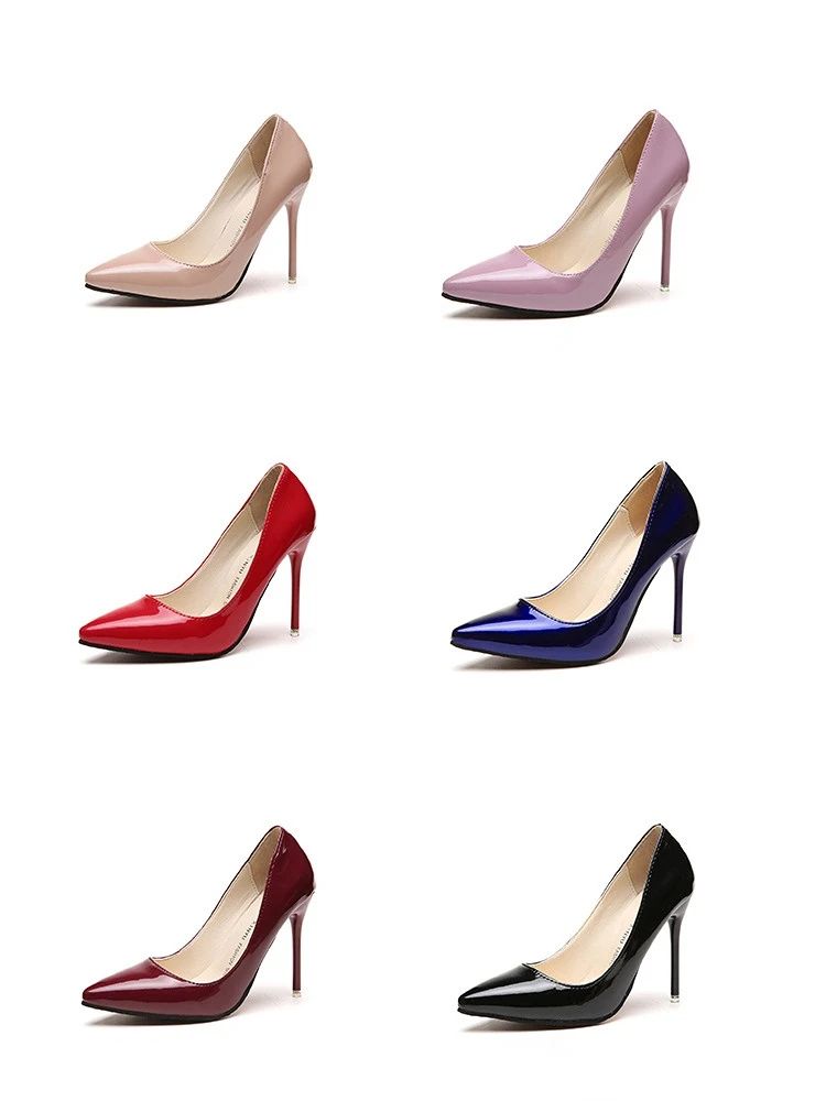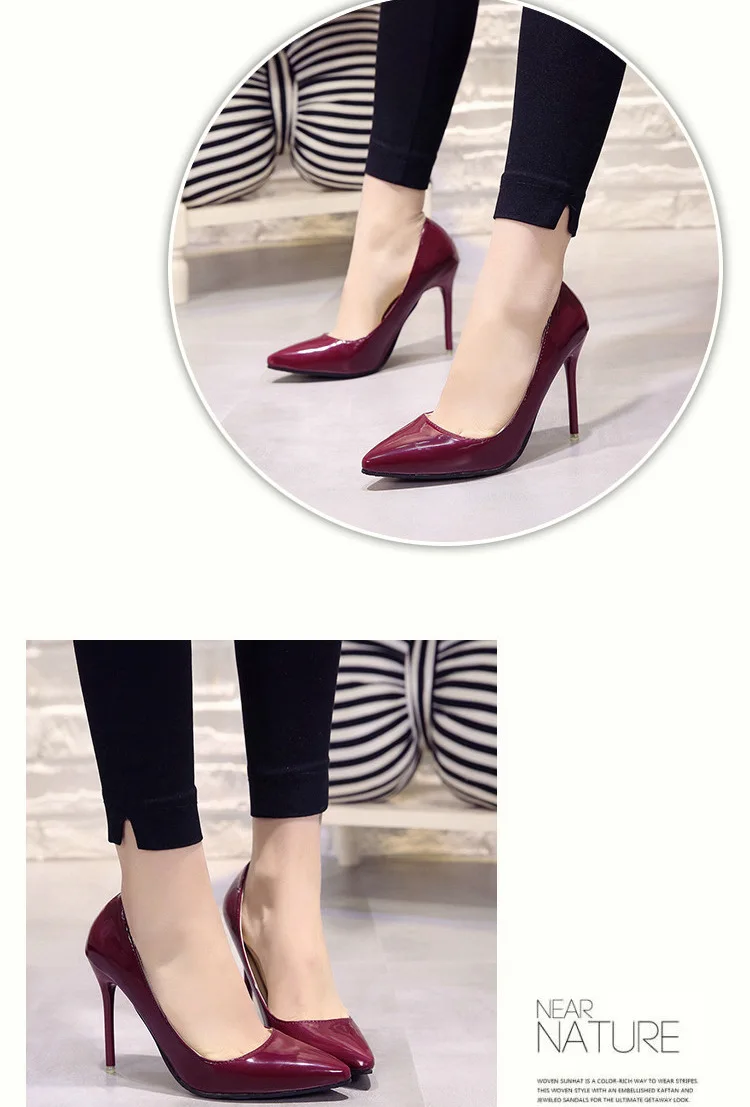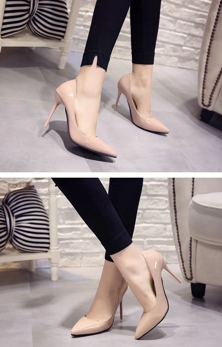 New Nude Pumps for Women High Heel Shoes Female Fashion Patent Leather Sexy Pointed Toe Thin Heel Wedding Shoes Plus Size 34-44
