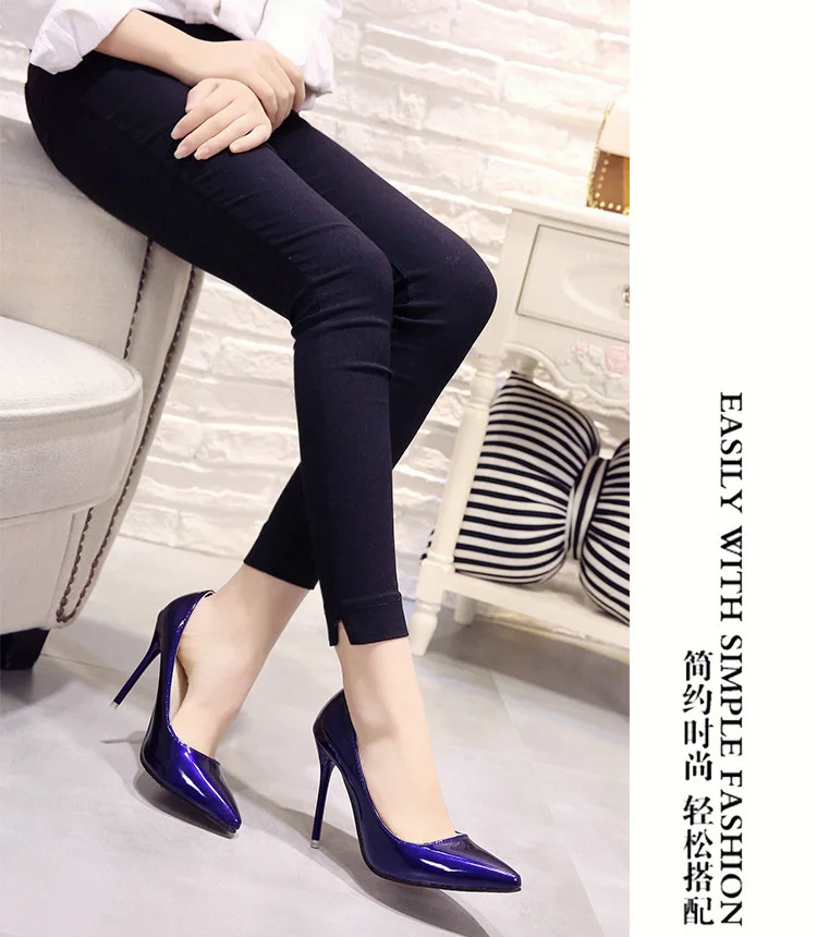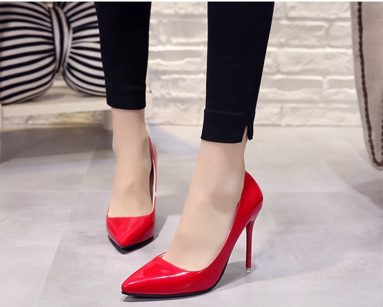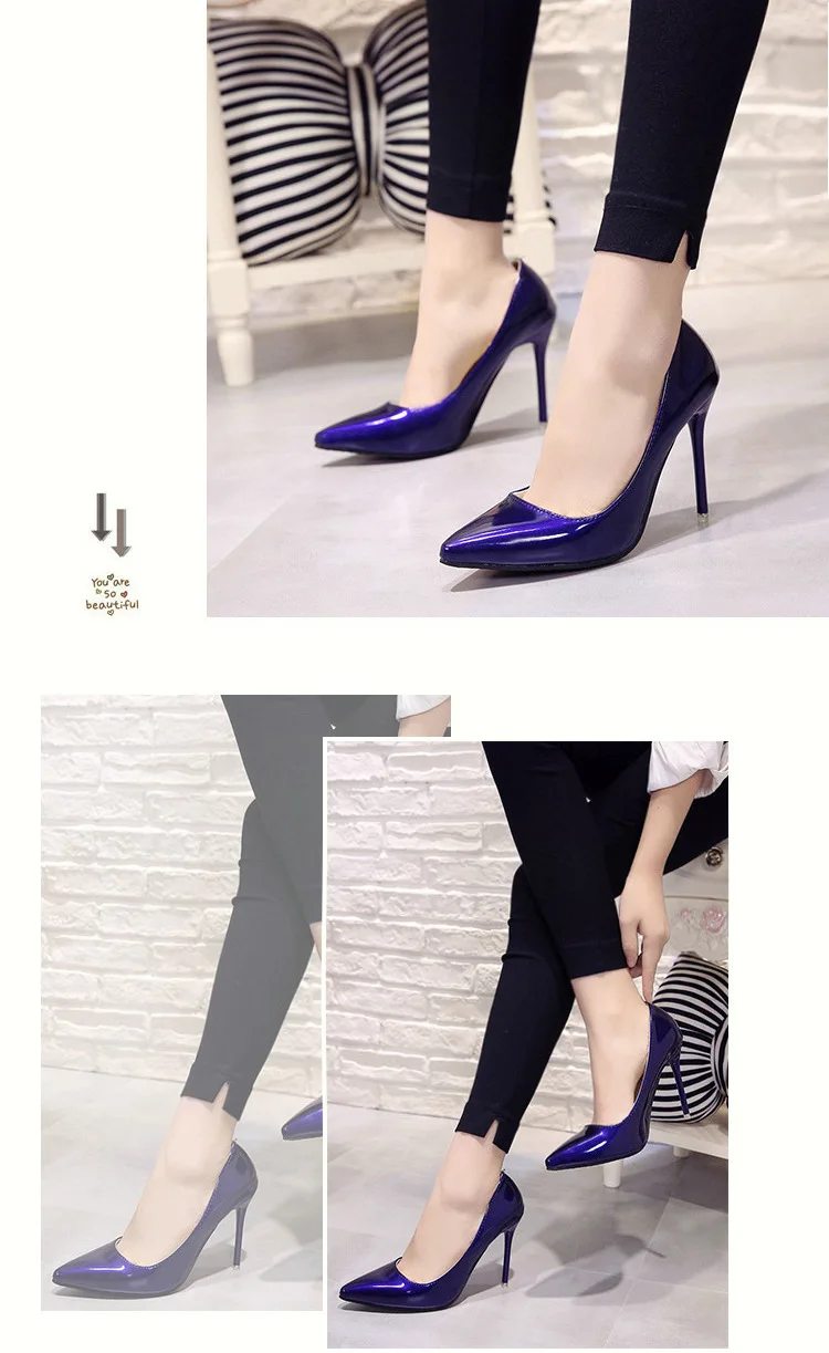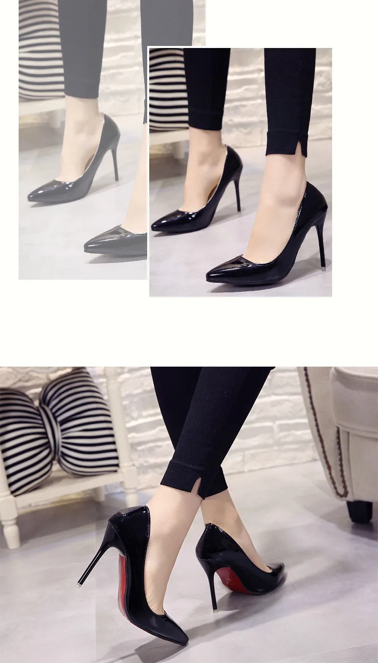 New Nude Pumps for Women High Heel Shoes Female Fashion Patent Leather Sexy Pointed Toe Thin Heel Wedding Shoes Plus Size 34-44
