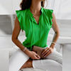 New Ruffles Shirt Women Summer Elegant V Neck Short Sleeve V Neck Casual Blouse Female Casual Solid Loose Shirt Plus Size 2022
