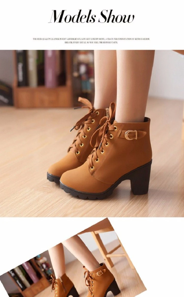 New spring Winter Women Pumps Boots High Quality Lace-up European Ladies shoes PU high heels Boots Fast delivery rtg67