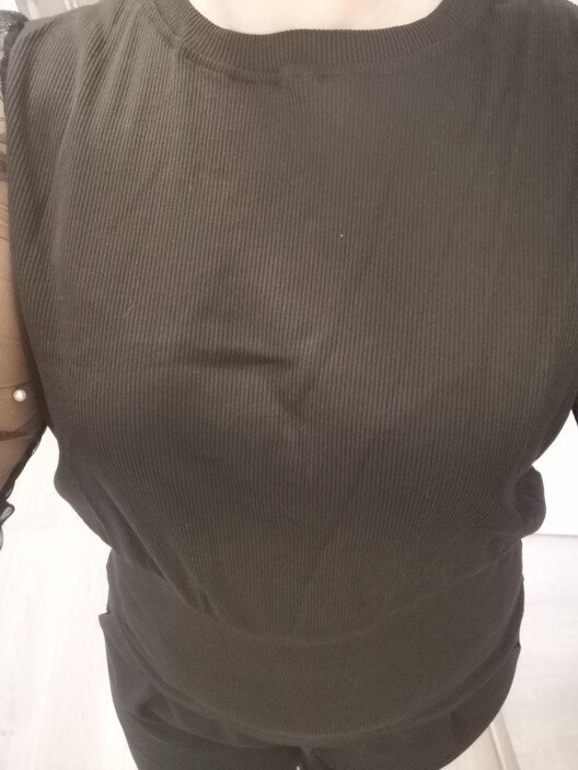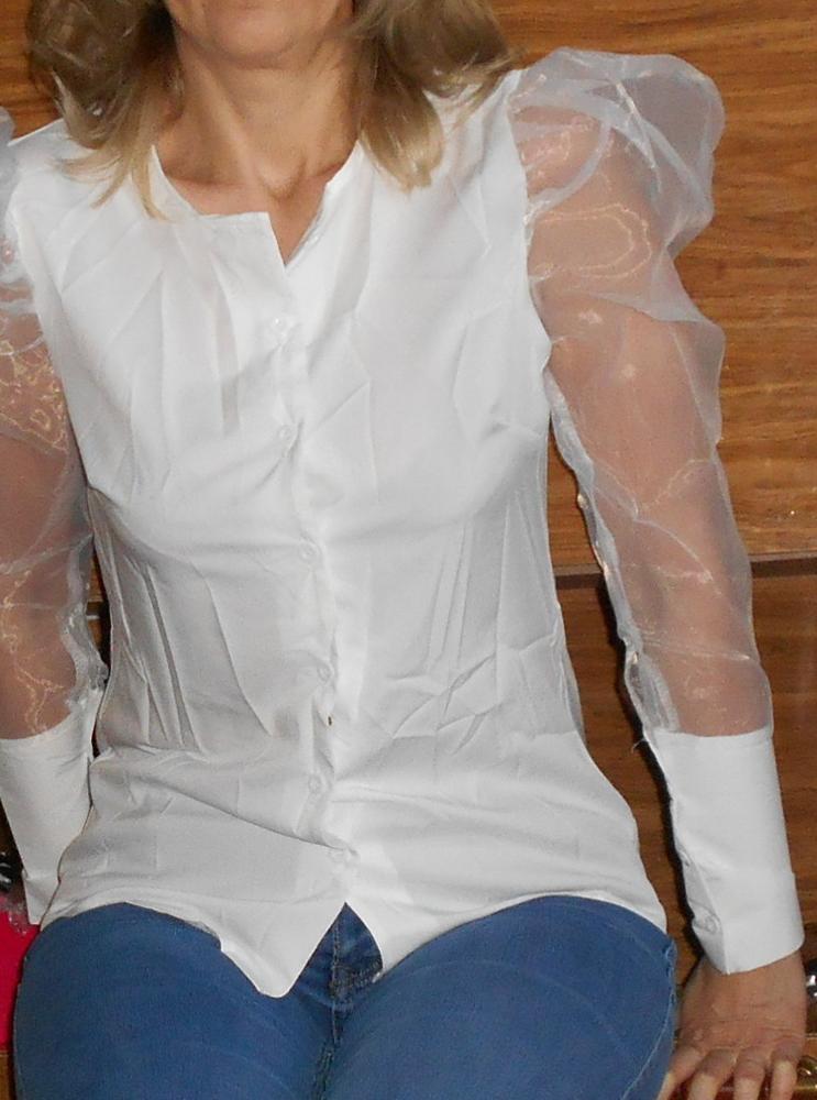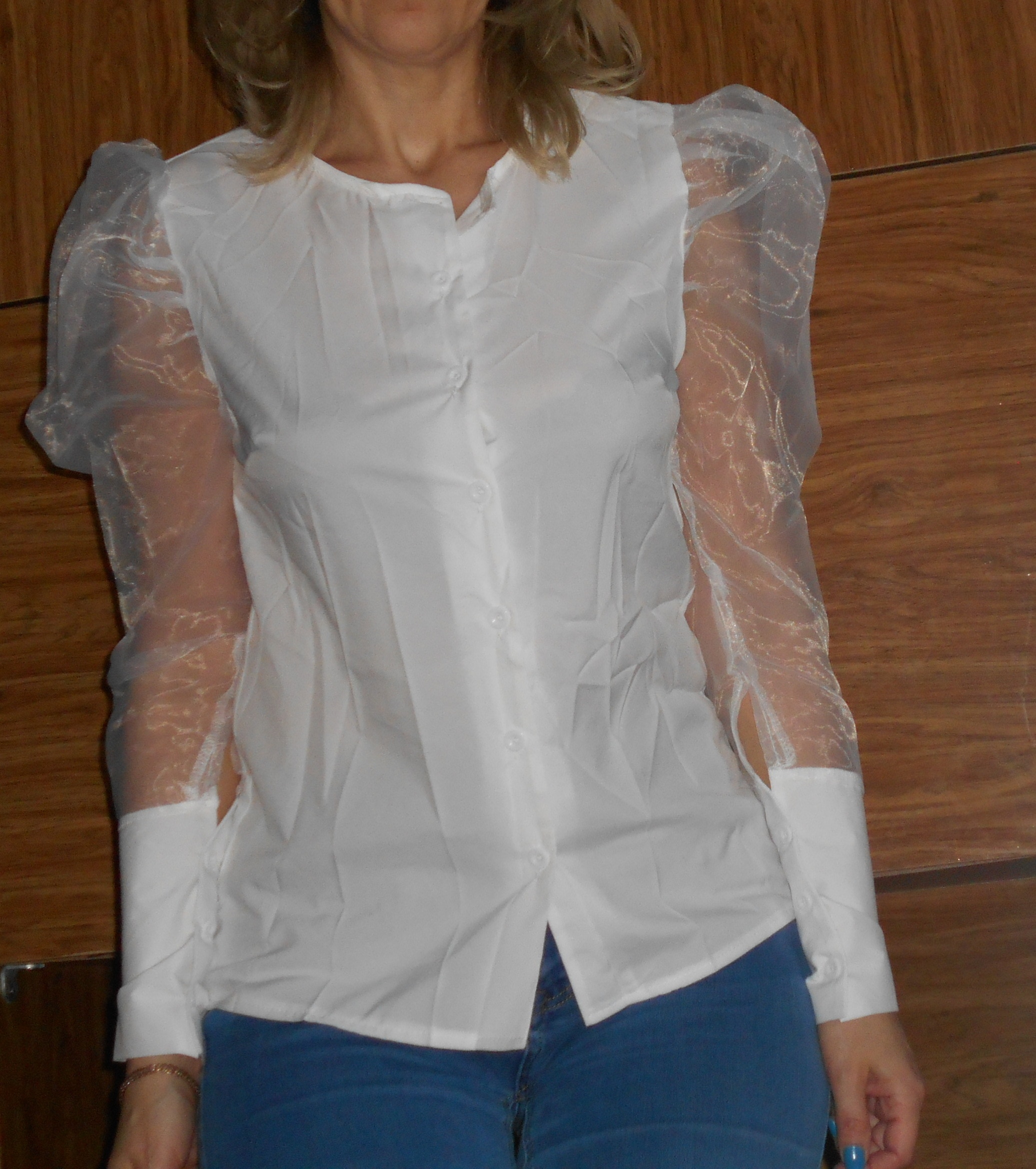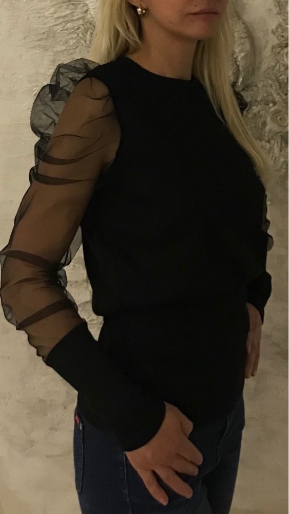 On my 46R ordered size S, the blouse is generally good! A few small Cons: very thin, but not critical! The sleeves are simply made of transparent Capron fabric, but look fashionable, the threads are stuck in places. The product is satisfied, the price is the same!