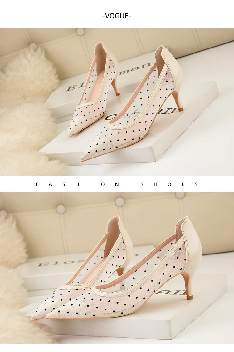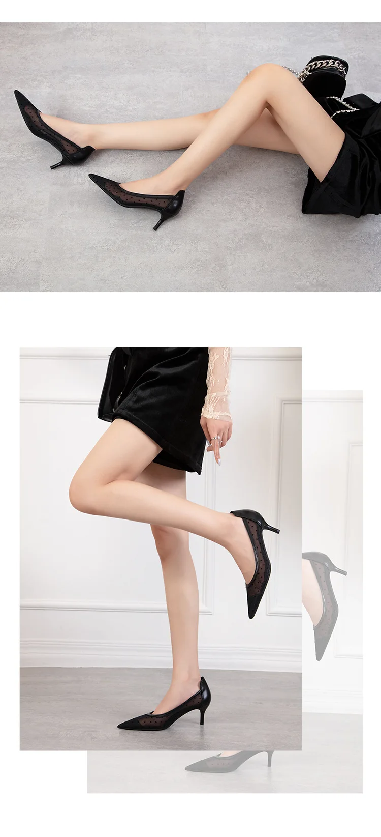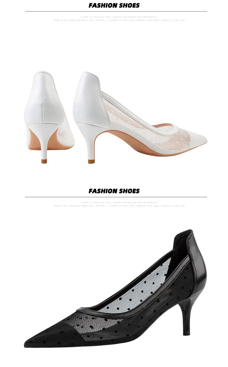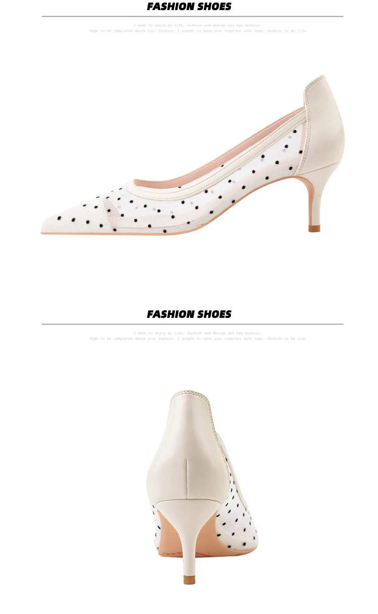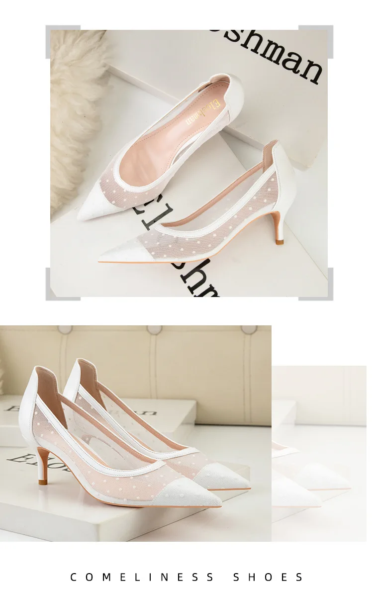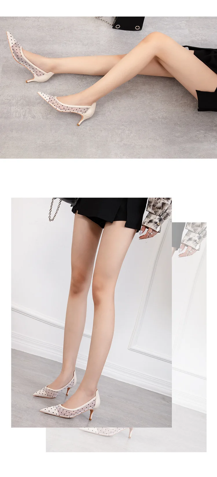 New Women's Fashion Personality Thin High Heels Stiletto High Heels Shallow Mouth Pointed Mesh Hollow Polka Dot Single Shoes
