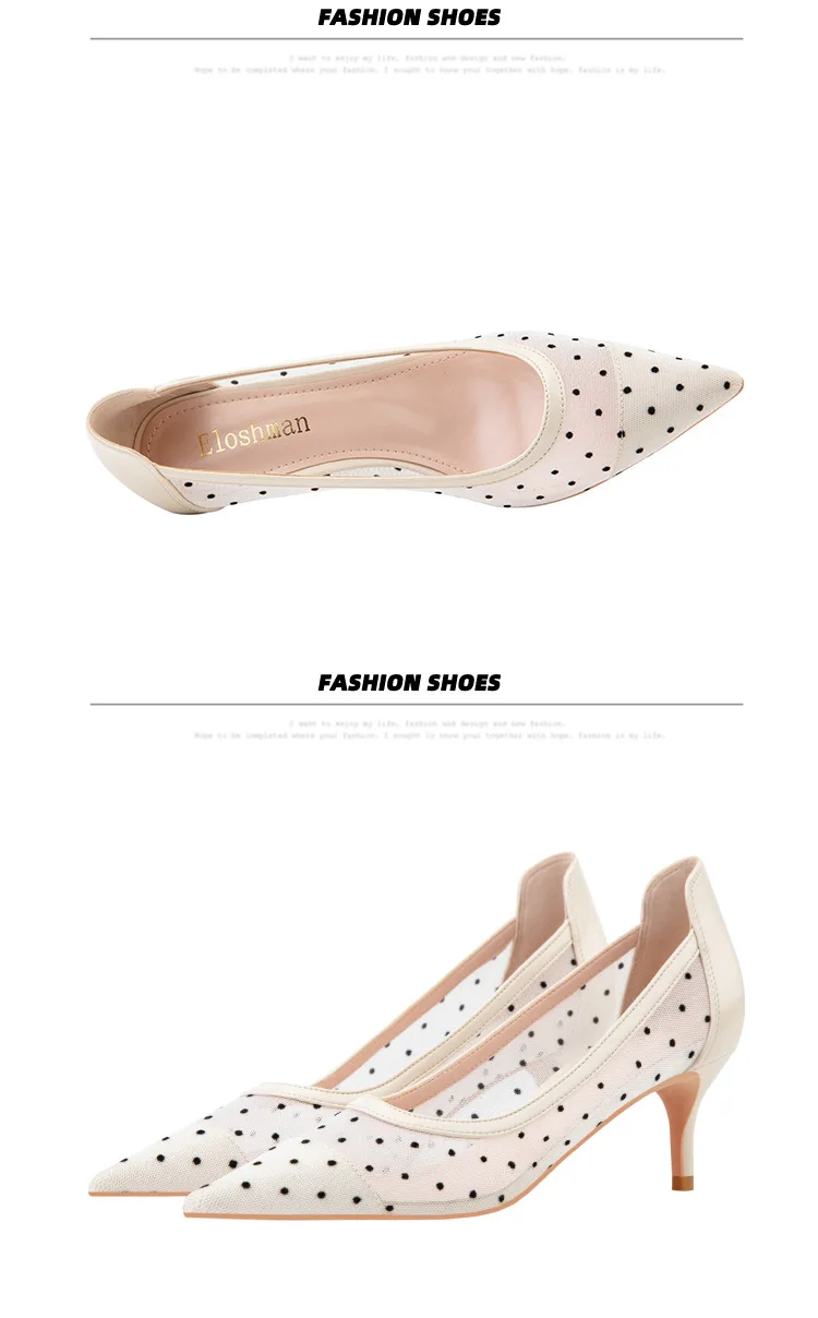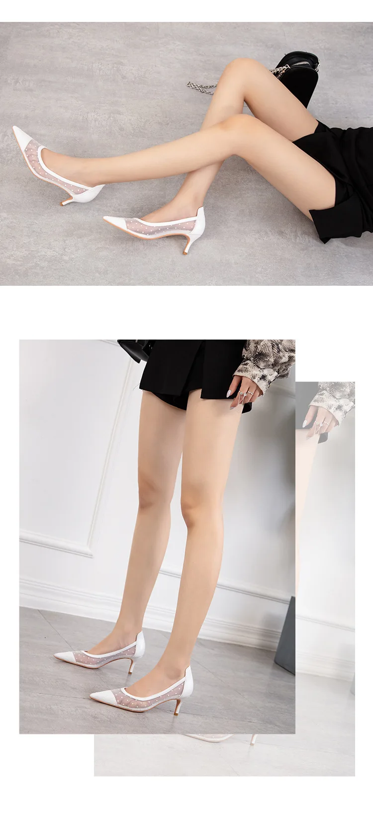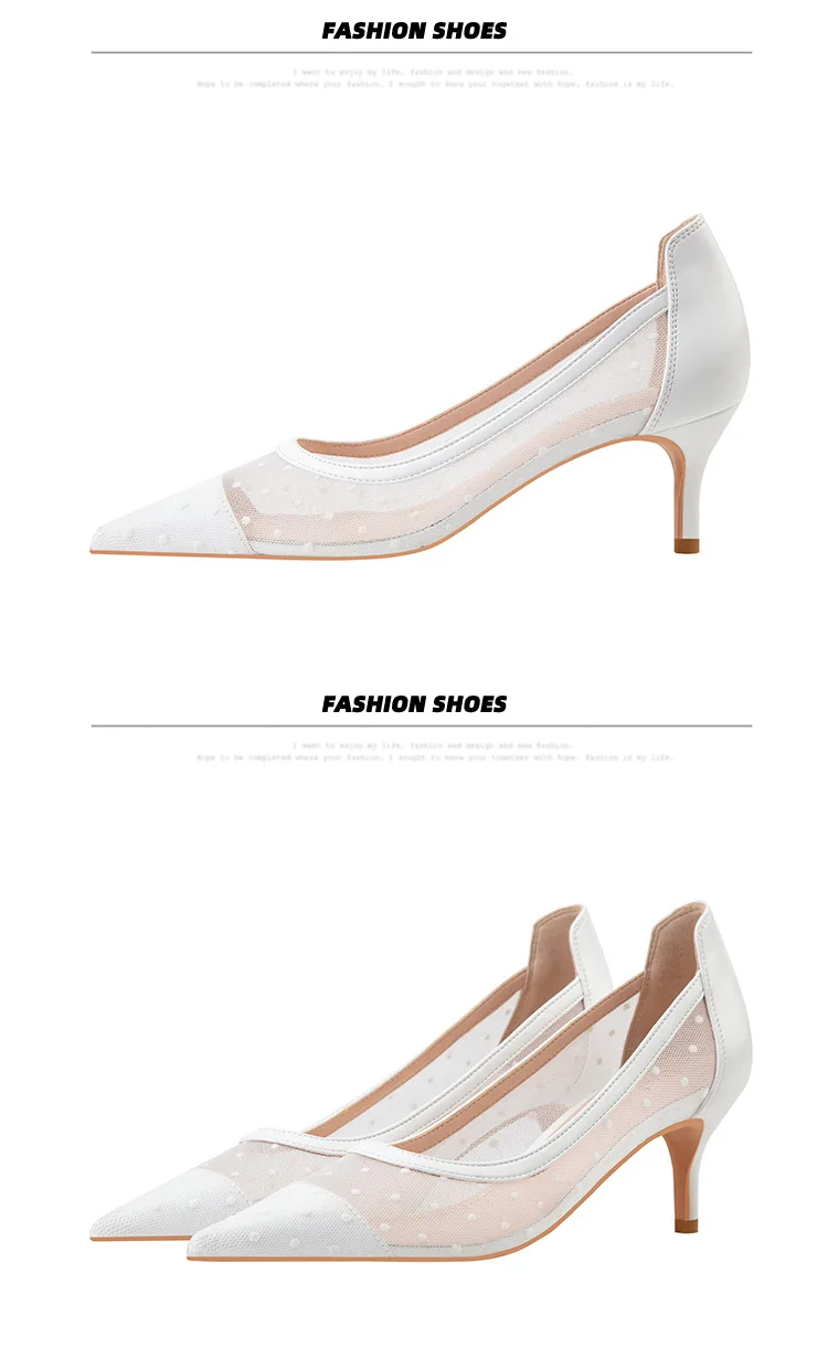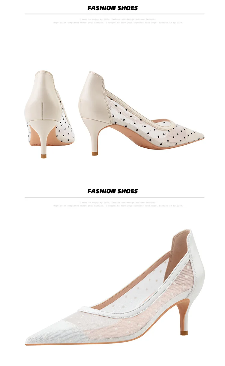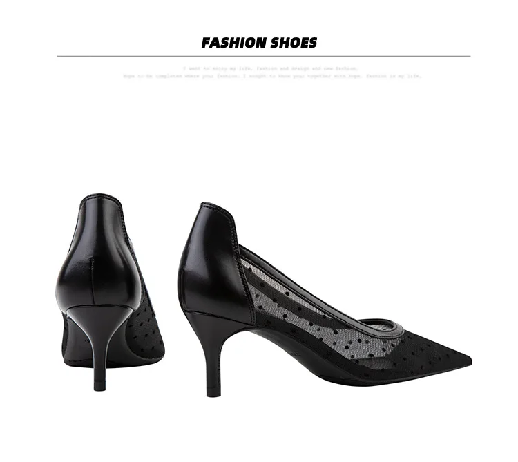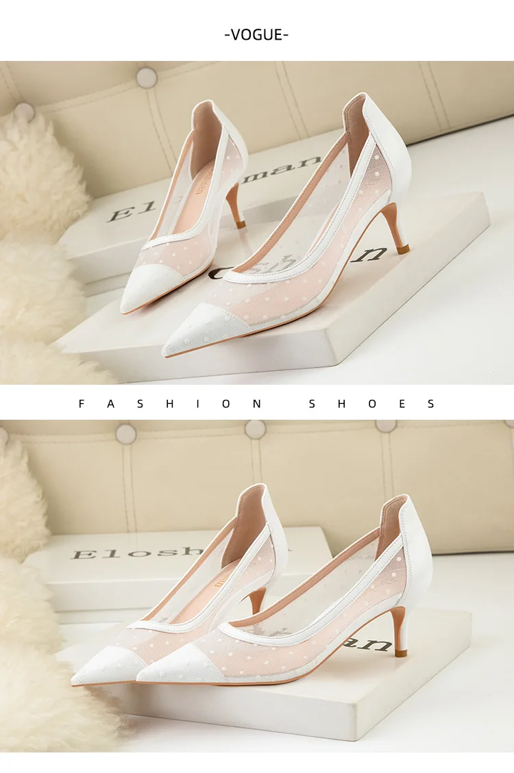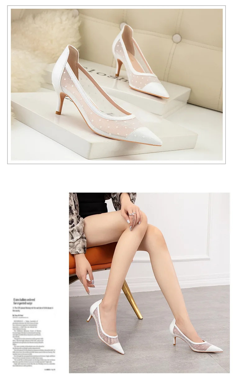 New Women's Fashion Personality Thin High Heels Stiletto High Heels Shallow Mouth Pointed Mesh Hollow Polka Dot Single Shoes