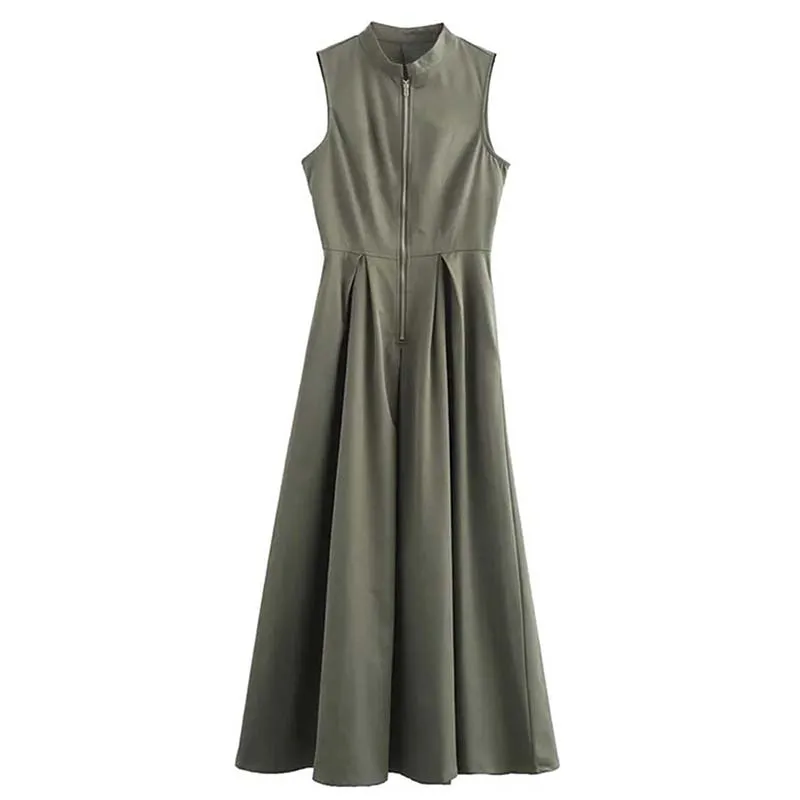 New Zipper Long Dress Woman Pleated Sleeveless Bodycon Dress Summer Elegant Party Dresses for Women Evening Midi Dresses