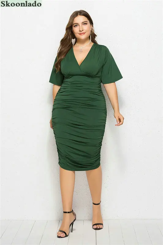 Newest 4XL Plus Size Women Dress Slim Wrinkle Design Cotton Summer Ladies Dresses Fashion Solid Colors Slim Waist Parts Oversize