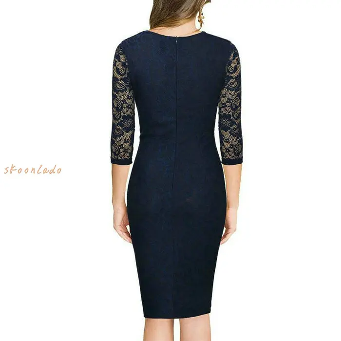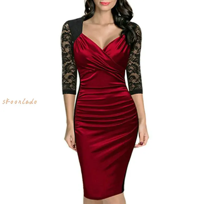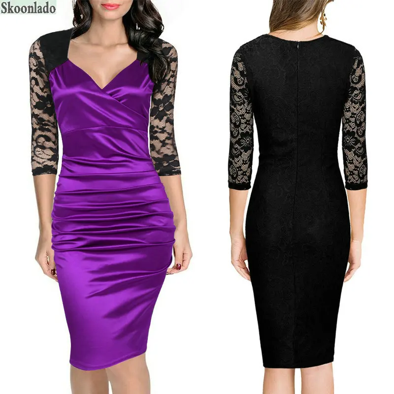 women summer patchwork dress office working dresses slim lady elegant lace sleeve clothing female formal clothes meeting classy lady dresses