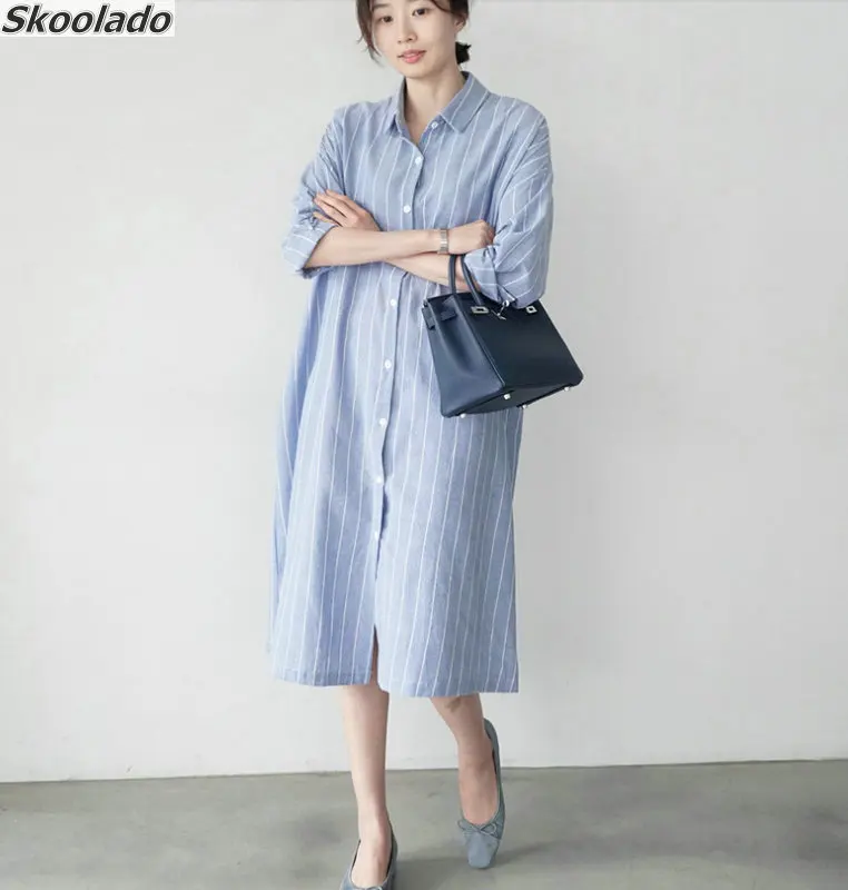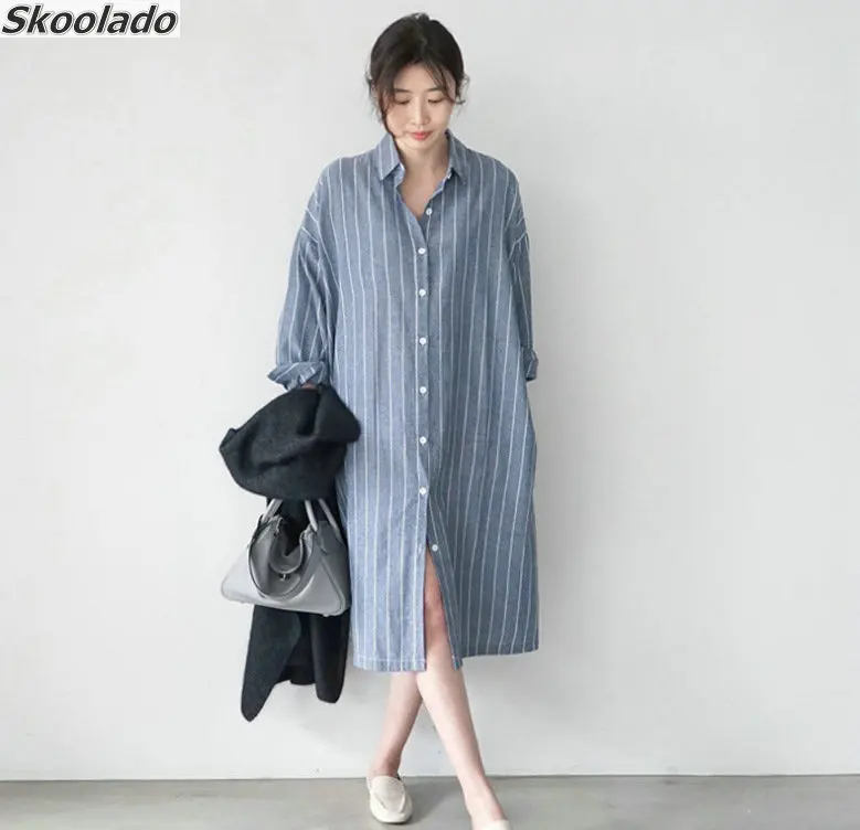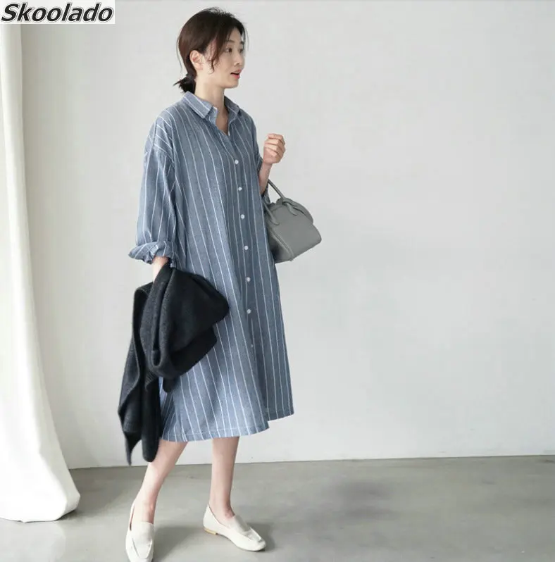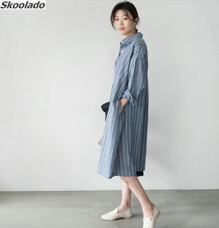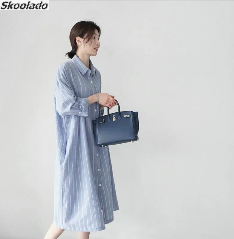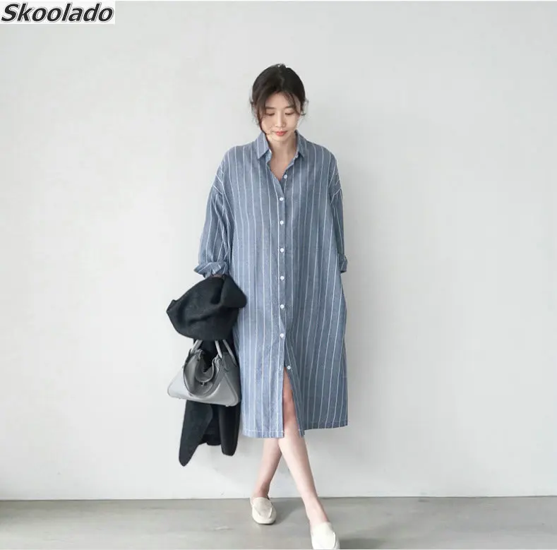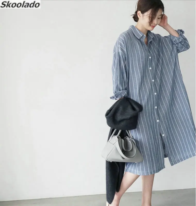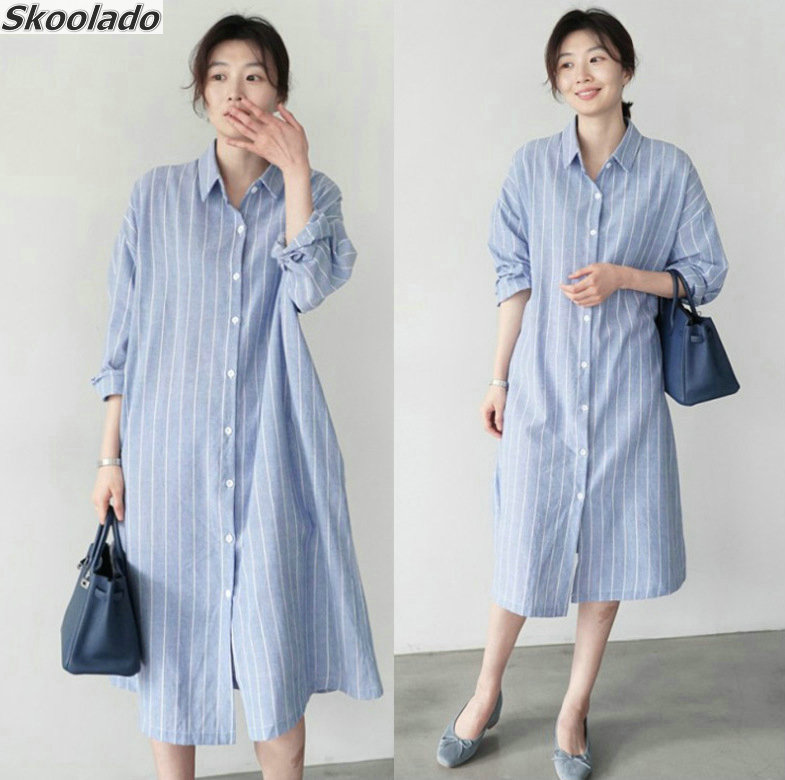 Newest Japan Design Women Long Cotton Shirt Oversize Casual Holiday Fashion Lady Loose Hotsale Stripe Classic Fashion Clothes