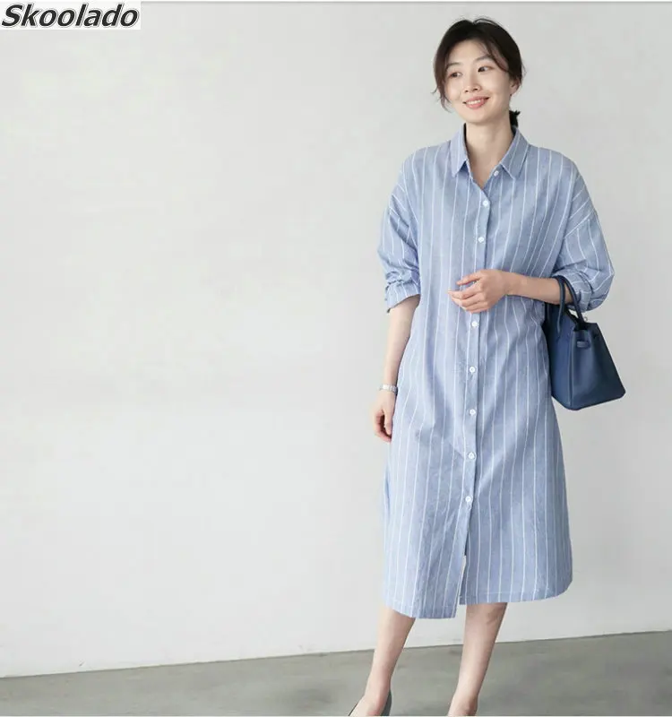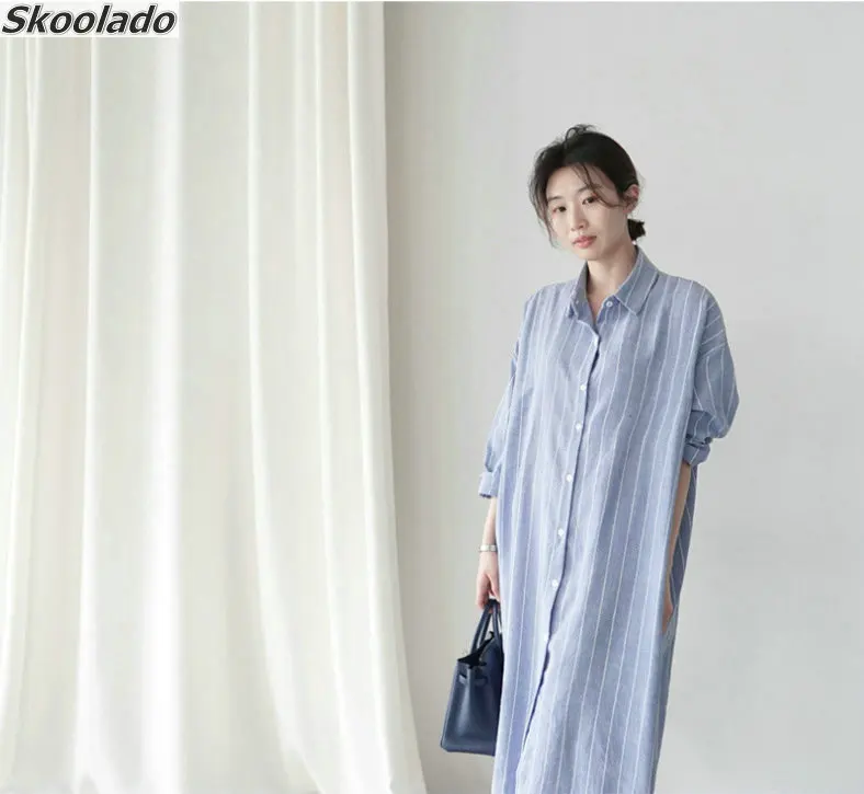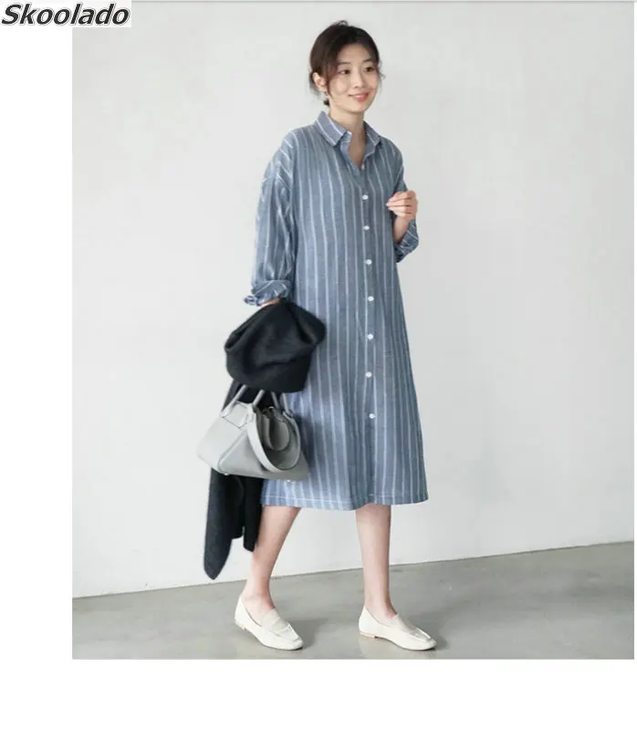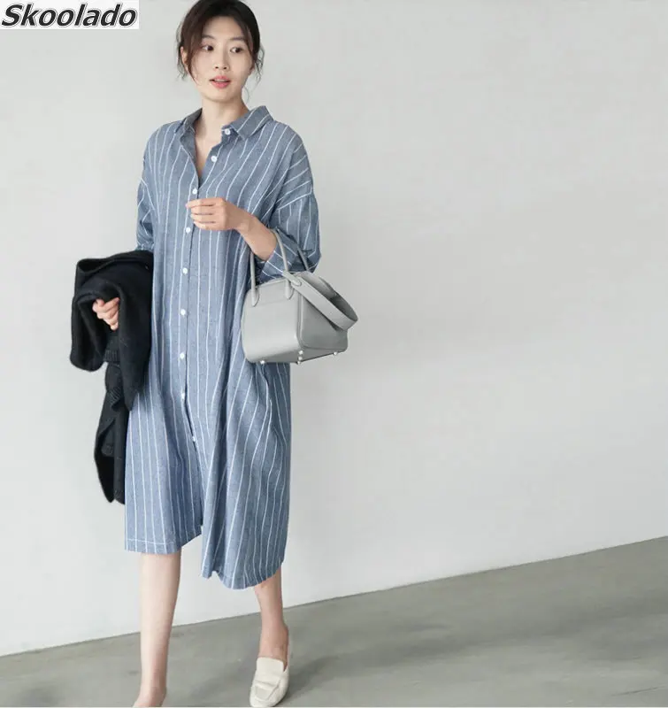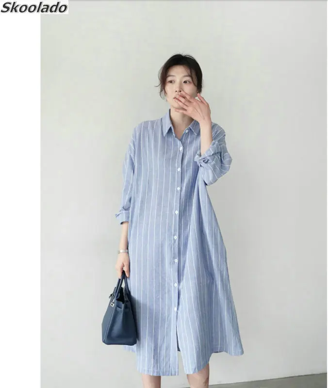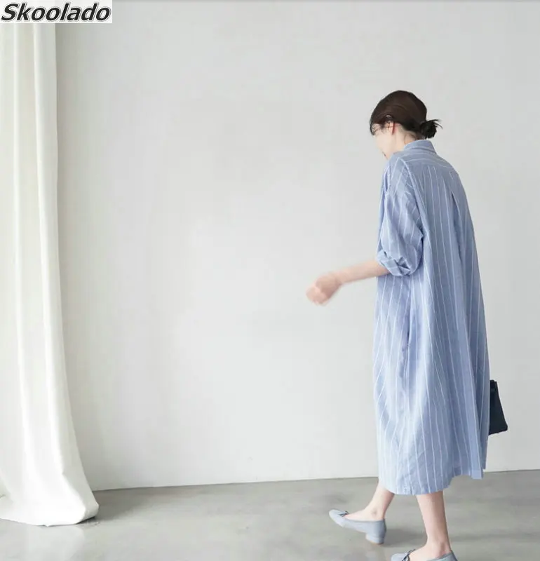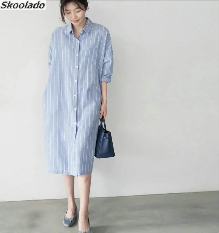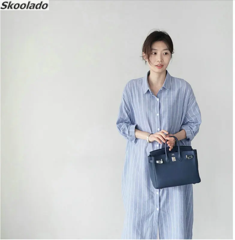 Newest Japan Design Women Long Cotton Shirt Oversize Casual Holiday Fashion Lady Loose Hotsale Stripe Classic Fashion Clothes
