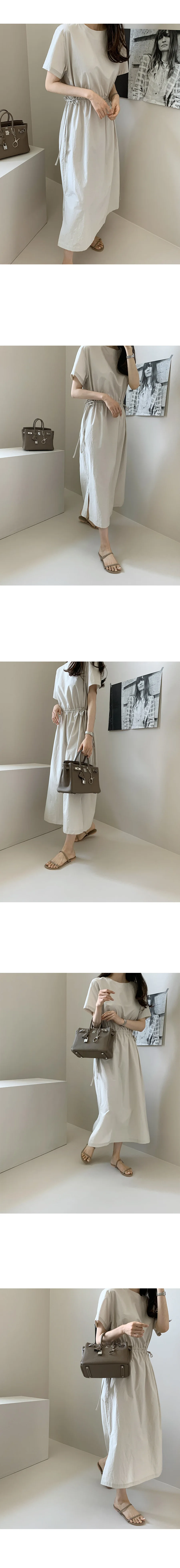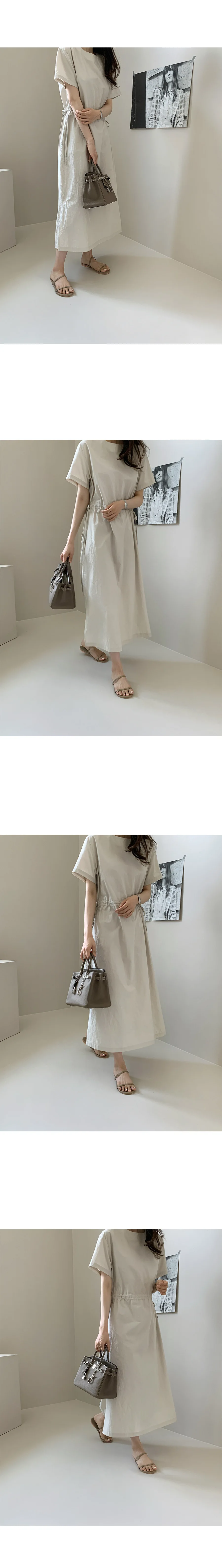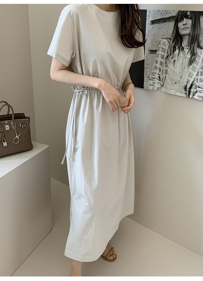 Newest Round Neck Short-Sleeved Cotton Long Dresses Belted Pure Color Cotton Linen Series Casual Fashion Comfortable Long Skirt