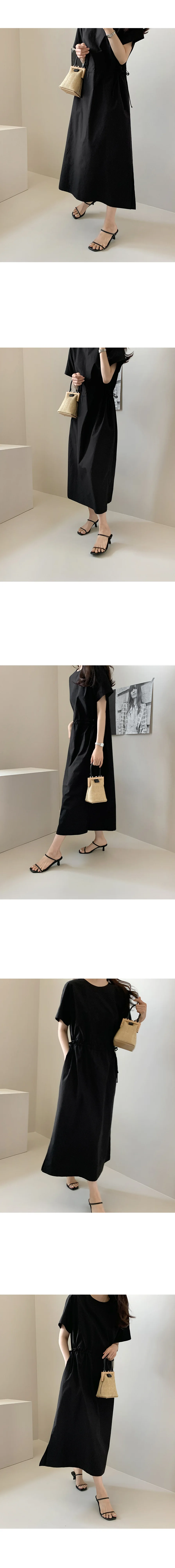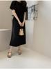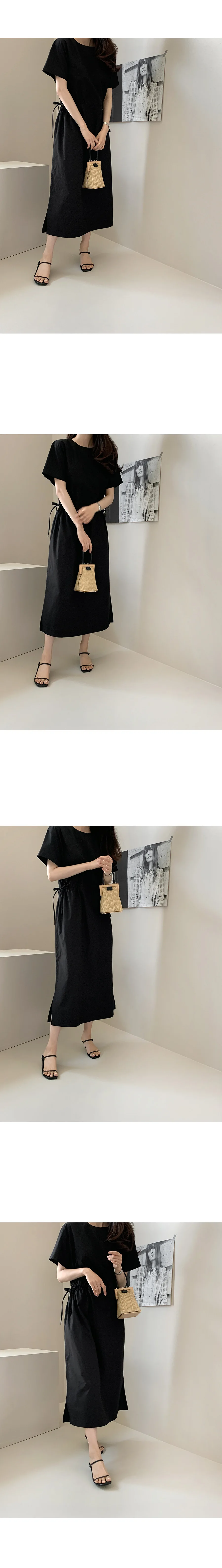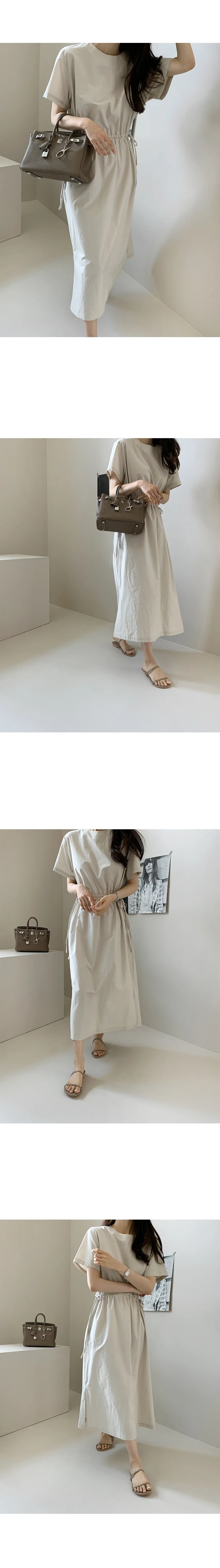 Newest Round Neck Short-Sleeved Cotton Long Dresses Belted Pure Color Cotton Linen Series Casual Fashion Comfortable Long Skirt