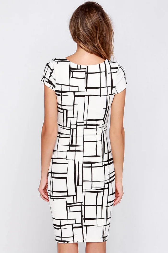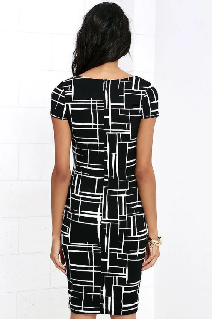 Newest Women Office Working Formal Dresses Line Pattern Slim Shape Cotton Dress Lady Elegant Classy Overseas Sizes Women Clothes